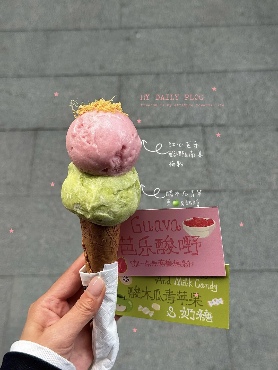 红楼新出的酸木瓜青苹果🍏&奶糖… 真的给到夯!! 酸木果、青苹果清甜 再来一点奶糖🍬淡淡香… 一口绵密清爽🤤 红心芭乐酸嘢点缀🤏南姜梅粉…芭乐果香太惊艳口感😭 都快去吃!!