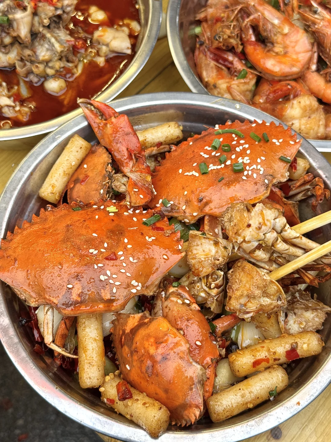 不愧是长沙网友私藏都在安利的小破店! 饭点好多附近本地老口子和大学生来吃🥹🥹真心便宜又好吃!就在:七子香辣蟹 他家除了香辣蟹,还有好多小吃烧烤也很好吃!招牌蟹里面加了年糕巨好吃!还有跳跳蛙也很不错!还得是这种在居民区的独栋苍蝇馆子没踩雷~来长沙姐妹真心值得去尝尝