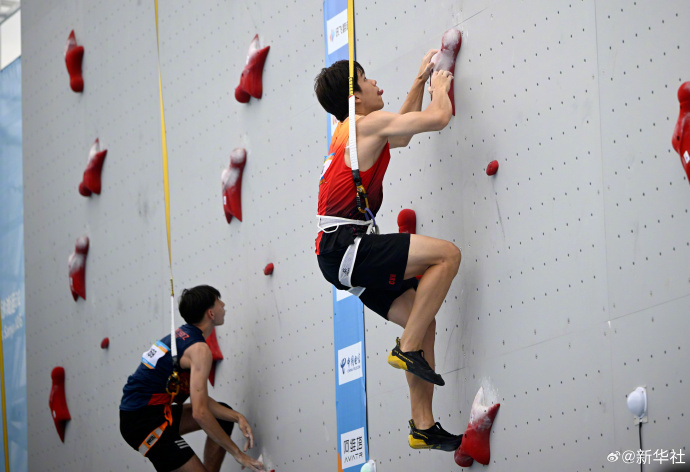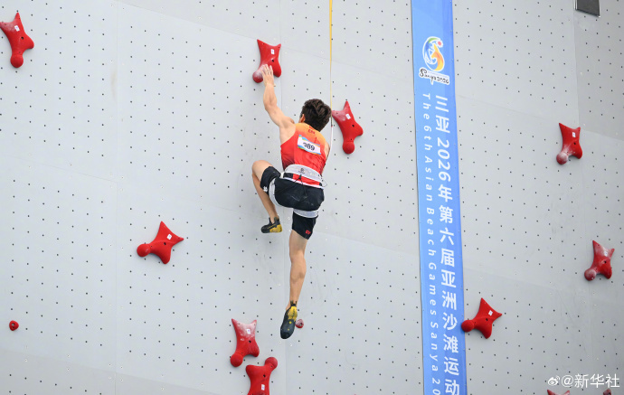 【中国选手#赵一程打破男子速度攀岩世界纪录#】在刚刚结束的亚沙会男子速度攀岩预赛中,中国选手赵一程以4秒58的成绩创造该项目世界纪录。原纪录是由美国选手沃森在2025年攀岩世界杯巴厘岛站中创造的4秒64。 (新华社)
