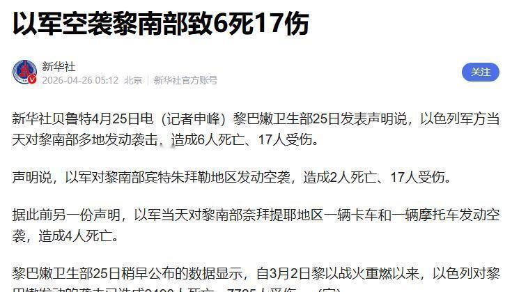 4月27日深夜,以色列空军在社交媒体上投下一枚“深水炸弹”:以军已正式开启对贝卡谷地及黎巴嫩南部多地的猛烈空袭。 消息一出,全球舆论瞬间炸锅。要知道,仅仅在96小时前,特朗普还在白宫信誓旦旦地宣布黎以停火再延长3周。 这耳光抽得响亮。以色列不仅撕碎了美国的停火协议,更直接把轰炸范围扩大到了黎巴嫩腹地,摆明了不给老大哥留面子。 与其说这是一场军事突袭,不如说是一场精心设计的政治博弈。此时的以色列总理内塔尼亚胡,正处于从政以来最至暗的时刻。 就在空袭发生的24小时前,以色列总统赫尔佐格公开宣布:暂不赦免内塔尼亚胡。 这意味着特朗普两次亲笔写信、甚至直接喊话“今天就赦免”的顶级面子,在以色列司法独立面前彻底碰了钉子。 赫尔佐格的回应极具杀伤力,他直言“以色列是主权国家,法律必须得到尊重”。翻译成大白话就是:总统不买账,总理得受审。 而内塔尼亚胡面临的指控足以让他余生都在高墙内度过。受贿罪最高10年,欺诈罪3年,这“豪华套餐”谁接得住? 4月27日本该是他出席腐败案听证会的日子,但他第18次以“安全考虑”为由申请推迟。 在以色列,有个心照不宣的秘密:只要战火不熄,国家就处于紧急状态,内塔尼亚胡的审判就能无限期延后。 这就解释了为什么当全世界都在呼吁和平时,以色列的战机却飞向了更远的贝卡谷地。 真主党也不是好惹的,其秘书长卡西姆在27日直接回怼:自停火协议生效以来,以军违规次数高达500多次。 卡西姆的表态异常强硬,他明确呼吁黎巴嫩政府放弃直接谈判,并直言“绝不回到3月2日之前挨打不还手的状态”。 这种“针尖对麦芒”的局势,让黎以边境变成了一个随时会引爆全球的火药桶。 数据是冰冷的,也是残酷的。据统计,自3月2日战火重燃以来,以军袭击已造成2509人死亡,其中包括177名儿童。 但这还不是最让内塔尼亚胡头疼的。在他后方,一场针对他的“政治围剿”已经悄然完成集结。 4月26日晚,以色列两位前总理贝内特与拉皮德在海尔兹利亚紧紧握手,宣布合并组建新政党——“团结”党。 贝内特在发布会上撂下狠话:“分裂的时代结束了,纠偏的时代已经到来。” 这个新政党的纲领条款字字诛心:一旦胜选,立即成立国家调查委员会,并推动限制总理任期的法案。 这简直是为内塔尼亚胡“量身定制”的政治枷锁。民调显示,“团结”党与现任政府的支持率已旗鼓相当。 距离10月的议会大选只剩半年,留给内塔尼亚胡闪转腾挪的空间已经越来越小。 一边是越打越烈的边境战火,一边是紧追不舍的司法审判,中间还夹着一个虎视眈眈的反对派联盟。 伊朗外长阿拉格齐曾说过一句狠话:全地区停火,就是内塔尼亚胡入狱的开始。 现在看来,为了不进监狱,内塔尼亚胡似乎只能选择让硝烟继续弥漫。 当个人的自由与国家的和平被强行挂钩,这场中东大戏的底色,终究是普通平民在用生命买单。 10月的大选将是最后的决战,而在此之前的每一分每一秒,中东大地恐怕都难见真正的曙光。