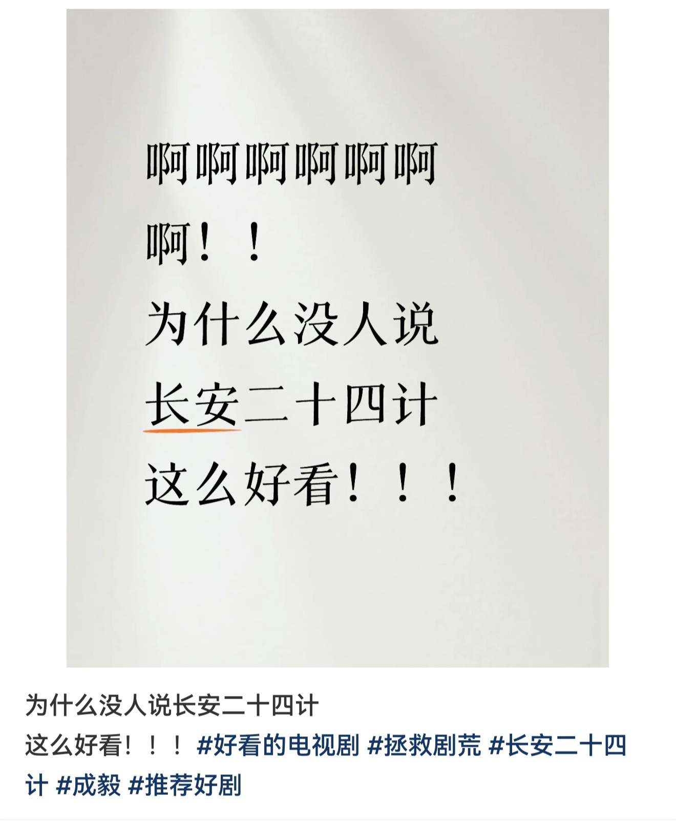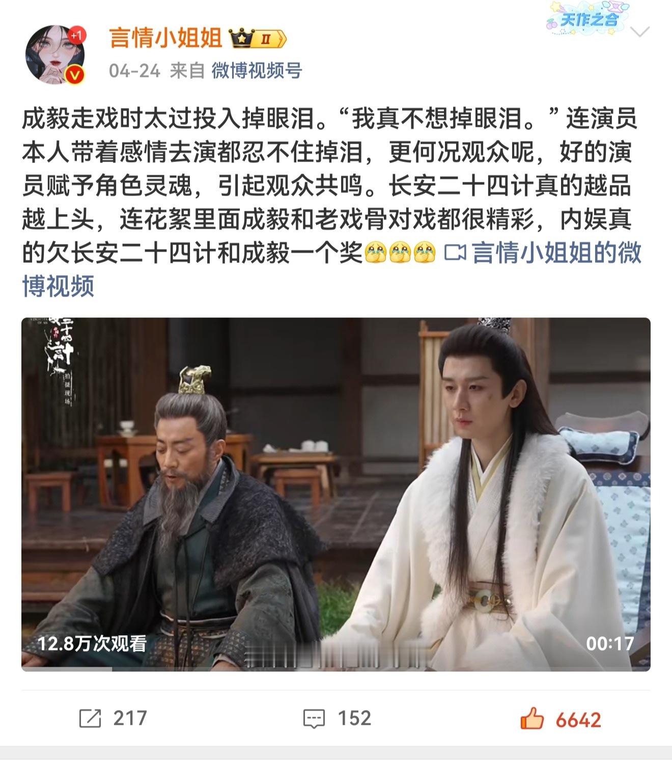 我们一直在安利成毅的长安二十四计好嘛,真的不是粉丝滤镜,长安二十四计就是好看,就是夯爆了!长安二十四计和成毅值得拿很多奖,在观众心中满分!