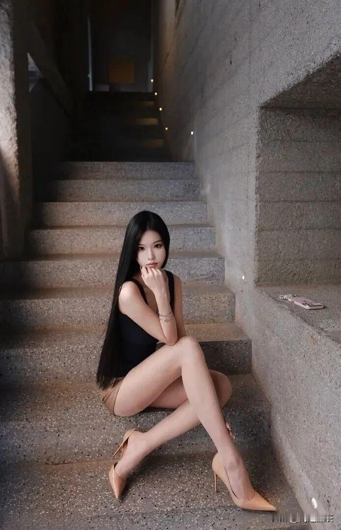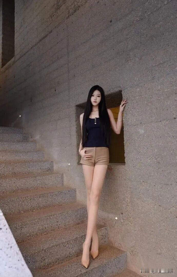 谁懂啊!水泥楼梯拍出了超模气场💥 黑背心+卡其短裤,配一双裸色高跟,腿长直接拉满!冷调工业风场景,又A又欲,每一帧都戳中审美,这组穿搭和构图模板快码住!
