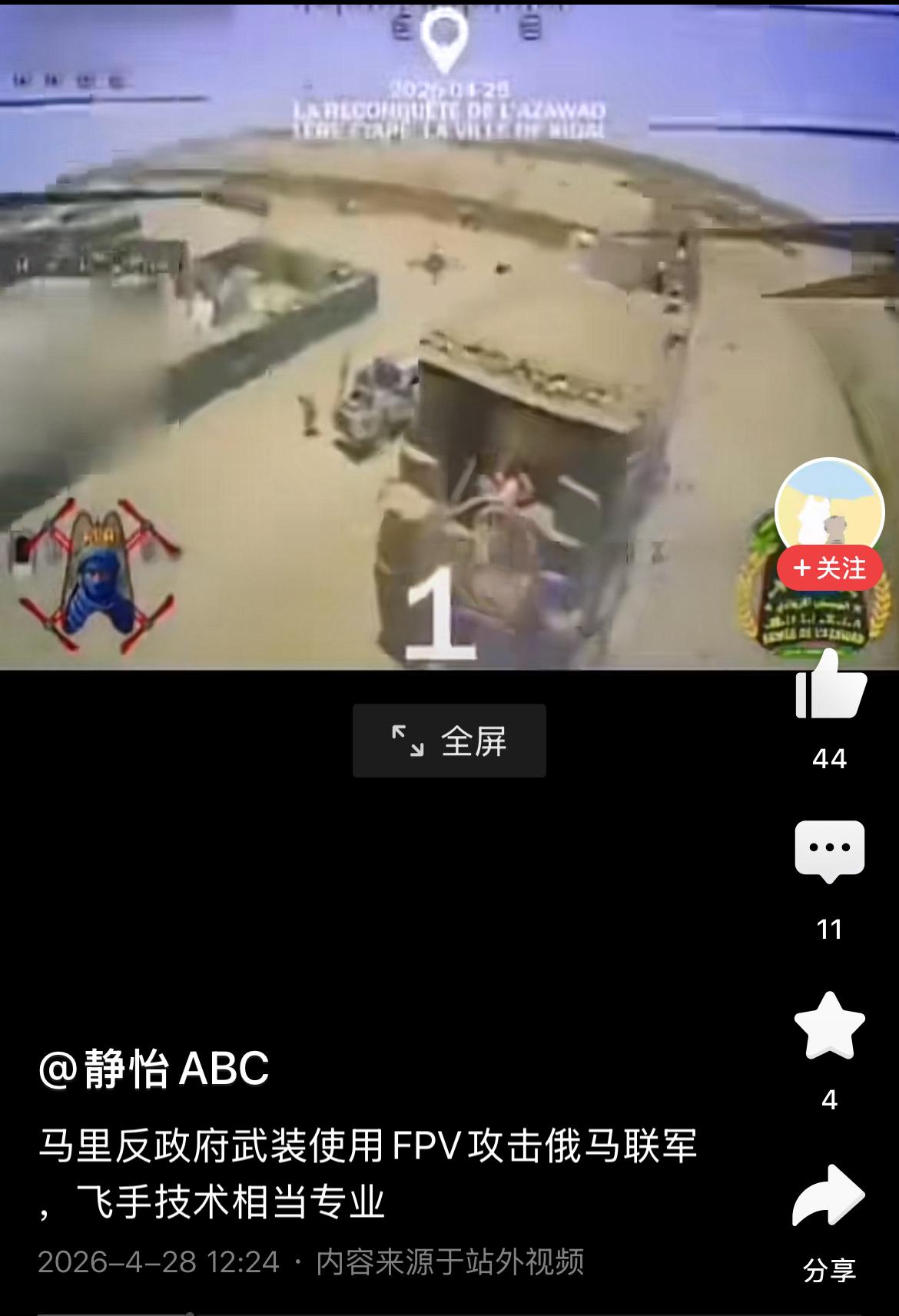 马里反政府武装,用FPV无人机攻击俄马联军,手法非常熟练。 非洲黑哥哪会这些高科技的东西,这战法与2024年底叙利亚反政府武装攻击政府军很相似。 看来俄乌战争已经外溢,中东、非洲都有乌克兰特种部队的影子。 俄罗斯现在的非洲军团,前身就是雇佣军瓦格纳,他们是乌克兰的死敌。