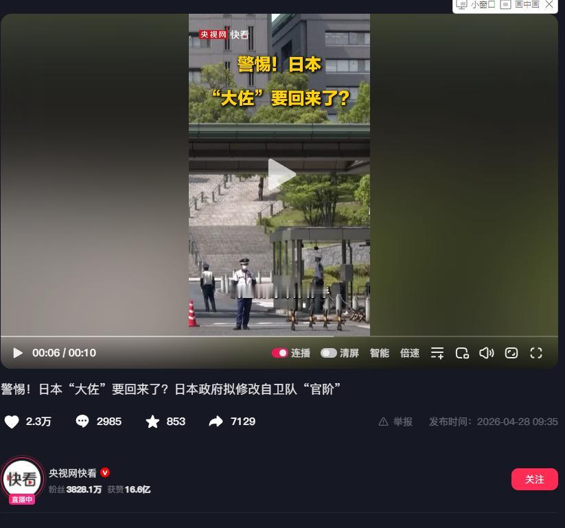 日本《读卖新闻》日前爆出猛料,日本政府已经彻底敲定了自卫队关键名称的修改方案,计划在本年度内向国会提交相关修订草案,这是自卫队1954年成立以来,首次对核心职衔名称进行全面调整,而调整后的大将、大佐、中佐等称呼,与当年发动侵略战争的旧日本帝国军队所用名号完全重合,这件事看着是改几个名字,实则藏着日本右翼势力憋了几十年的祸心。 所谓的国际接轨根本站不住脚,自卫队职衔的英文表述早就和国际通用体系完全一致,这次改的只有日语本土称呼,说白了就是做给日本国内看的,和国际交流没有半毛钱关系。 而所谓的提升荣誉感就更可笑了,就连防卫省内部征求意见时,大部分现役自卫官都觉得完全没必要,甚至有人担心用了旧日军的名号,反而会影响年轻人入伍招募,官方这套说辞,连自己人都骗不过。 这次改名的本质,就是日本右翼势力给自卫队“军队正名”的关键一步,是在一点点啃食和平宪法的底线。 当年日本战败后,之所以给这支武装力量起名自卫队,刻意避开所有旧日军的职衔称呼,核心就是遵守和平宪法中“日本不保有正规军队、不拥有对外交战权”的核心原则,从名称到定位,都死死框定在“专守防卫”的范围内。 而如今把旧日军的军衔名号全盘捡回来,就是要从法理认知和身份认同上,彻底撕掉自卫队“非军队”的最后一层遮羞布,让这支武装力量从里到外都变成一支正规军队,这是对日本和平宪法最直接的架空和突破。 更值得警惕的是,这从来都不是一次孤立的动作,而是日本近些年全面军事松绑、军国主义持续回潮的连环棋里,至关重要的一步。 就在短短几天前,日本政府刚通过内阁决议,彻底修改了防卫装备转移三原则,取消了杀伤性武器出口的核心限制,原则上允许对外出口战斗机、导弹等致命武器,甚至能向正在发生冲突的国家输送军备,彻底打破了战后坚守了几十年的武器出口禁令。 往前看,日本海上自卫队刚完成了成立以来最大规模的改组,水面作战部队的核心定位从“护卫”直接转向“作战”;陆上自卫队在全国多地部署远程进攻性导弹,航空自卫队的太空作战部队持续扩编升格,一系列动作环环相扣,全是奔着彻底摆脱战后束缚、实现全面再军事化去的,而这次职衔改名,就是从思想层面给整个自卫队完成军国主义的认知复辟。 日本政府主动捡起这些沾满亚洲各国人民鲜血的名号,本质上就是对二战侵略历史的彻底翻案,是对战后国际秩序的公然挑衅。 大将、大佐这些称呼,从来都不是简单的几个汉字,背后串联着的是日本侵华战争和太平洋战争里的累累血债,是南京大屠杀里的残暴行径,是东南亚殖民统治里的血腥屠杀,当年无数侵略暴行的直接执行者,就是顶着这些军衔的旧日军官兵。 如今日本政府堂而皇之地把这些军国主义的专属符号重新搬上台面,说白了就是根本没有对当年的侵略历史有过真正的忏悔,反而要把当年军国主义的所谓“荣光”重新捡起来,给国内愈演愈烈的历史修正主义站台,给右翼势力的翻案行为铺路。 这次改名带来的长远危害,远比改几个称呼要严重得多,它会彻底瓦解日本国内坚守了几十年的和平共识,给整个亚太地区的安全稳定埋下巨大隐患。 当自卫队的官兵开始用旧日军的军衔称呼自己,潜移默化中就会被军国主义的逻辑渗透,日本国内的反战和平声音会被进一步压制,右翼势力只会更加得寸进尺。 接下来要走的路,所有人都看得清清楚楚,无非是继续修改自卫队法,最终目标就是彻底修改和平宪法,把自卫队改成名副其实的国防军,让日本重新拥有对外宣战的权利,一个不肯正视历史、始终想着为侵略历史翻案的国家,一旦重新握起了战争的武器,对整个世界来说,都只会是一场灾难。