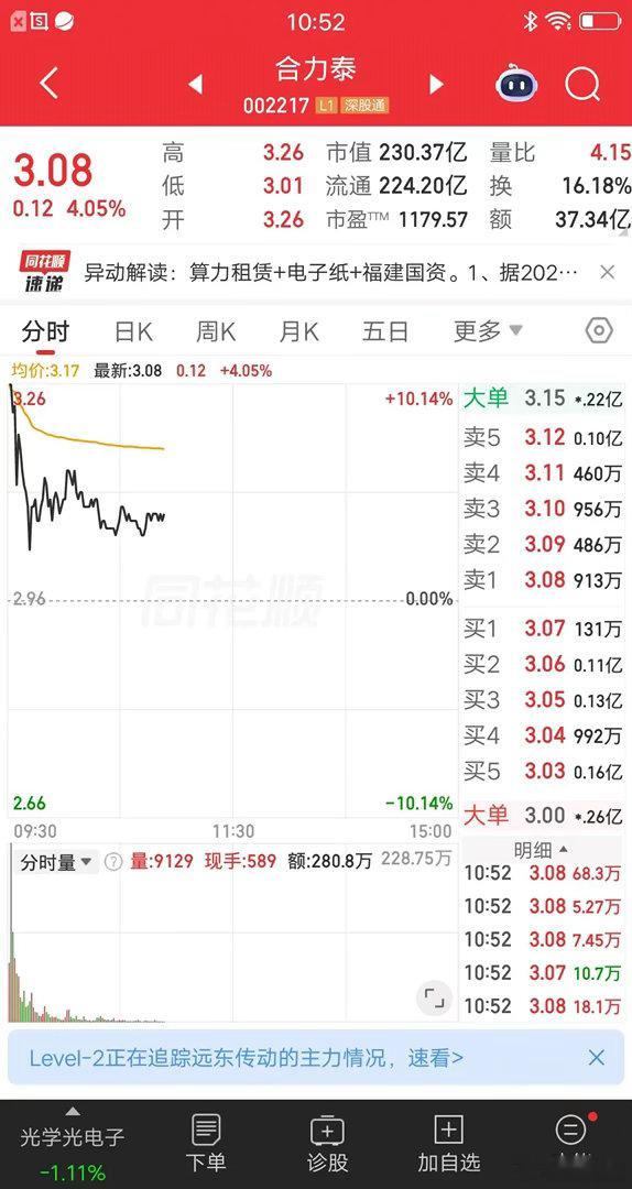 一位甘肃的股民,昨日复盘涨停池,在首板票中选择了合力泰。今天满仓干了47万块,成交价格3.26元。虽然股价炸板回落,但是他一点都不慌,因为他要做长线投资。买完之后,他发帖分享看好的逻辑,有不少网友围观。他觉得股票有算力租赁概念,是市场热门的赛道。公司在去年6月,成立了福建智泰驰骋数字科技有限公司,尝试性开展算力租赁业务,当前处于前期建设与商业化筹备阶段。2026年一季报,利润才82万多,下降了近80%,这个业绩可以说很烂了。他觉得绩差股,加上股价还低只有3元多,公司又开展了算力业务。市场资金就喜欢炒作这种票,就像国晟科技一样。综合考虑后,他选择梭哈合力泰,准备赌一把大的。有位股友说的很好,分析的很到位,但是还需要做到两点。第一,一定要执行到位,既然长线持股还不如卸载软件,以免被股价波动影响。第二,盈亏同源,能爆赚的方法也能爆亏,万一失败了,心态要淡定。大家觉得合力泰怎么样,欢迎发表看法。
