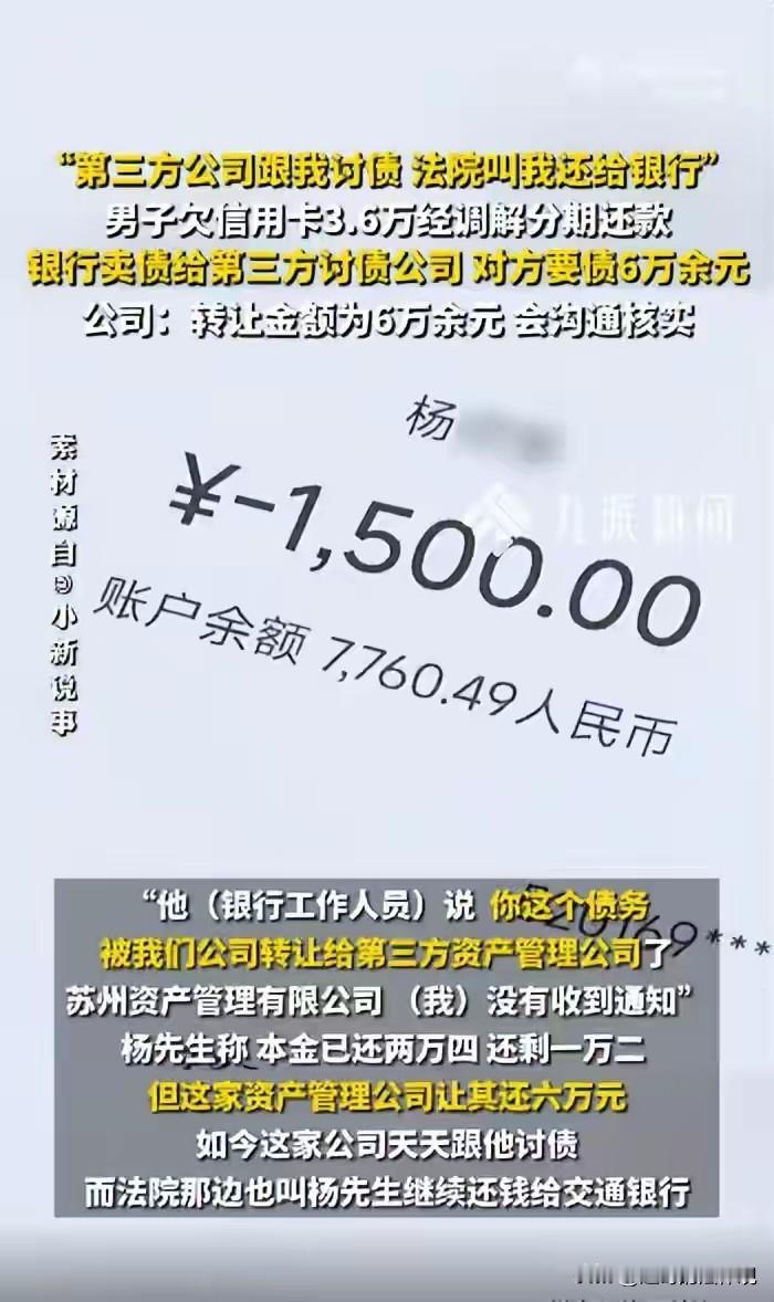 比高利贷还黑?浙江温州,男子因遇到了难处,欠了银行36000元,每月还1500,已经还了24000的本金,只剩下12000没还。不料,在没经他同意的情况下,银行把他的债务,打包卖给了第三方公司,本来还剩12000的本金,对方张口就要60000,这还不算,对方还天天找他讨债,日子都快过不下去了。 ATM机吞掉那张卡的时候,杨先生愣了足足半分钟。 2025年8月的某个下午,温州的暑气正黏在皮肤上。 他像往常一样,把1500块钱抚平,塞进存款口——这是第25笔"赎金",再有几期,那笔3万6的债务就彻底翻篇了。屏幕却弹出冰冷的提示:账户已锁定,交易失败。 他打给银行客服。对方查了三分钟,语气像在播报天气:"您的债权已经在2025年8月29日打包转让给第三方资产管理公司了,跟我们没关系了。" 杨先生脑子嗡的一声。转让?什么时候的事?客服补了一句:"短信通知发到您130的旧号码上了。" 那个号码,早停机了。 这就好比把判决书塞进一栋已经拆掉的旧房子,然后宣布"送达完成"。而此刻,真正的风暴才刚刚开始。 让我们倒带四年。 2021年,杨先生还是个老老实实的小生意人,信用卡刷爆了,欠下3万6。法院调解,银行递来一份分期协议:24个月,每月1500。他签字的时候,手指是松快的——这数字咬咬牙,还得起。 但他没看清协议深处埋着的那颗雷。 "加速清偿条款"。 八个字,翻译成大白话就是:只要你某个月晚一天,或者少交几十块,银行就能瞬间"翻脸",把剩余本金加上4万多违约金,一口气拉到近8万的执行标的。之前还的全不算,从头清算。 杨先生后来确实有过一两次延误。几天而已,几十块而已。但在银行的系统里,这颗雷已经引爆了。1万2的剩余本金,在法律账本上早已膨胀成另一套数字。 所以当资产管理公司接手时,他们拿到的不是1万2,而是一个标价6万5千4百53元的"资产包"。5万3的溢价,是利息、违约金、服务费,是各种普通人念都念不顺的名目。 催收员上门那天,把单子拍在桌上。杨先生盯着那个数字,手在抖。他算过账:还了2万4,欠1万2,怎么就变成了6万5? 更荒诞的还在后面。法院的文书依然有效,要求他往原银行的账户打钱。但银行已经不再是债主,钱打进去算谁的?资产管理公司堵在店门口要现金,说"我们是真金白银买的债权"。 杨先生被架在两座山之间。 不还,法院强制执行。 还了,可能白还。而催收的手段正在升级——电话24小时轰炸,半夜惊醒是常态。 老婆开始吃安眠药,孩子听到铃声就躲进被子。有人直接堵在店门口骂街,街坊四邻都看着,客流跌到谷底。 这不是讨债。这是要把人连根拔起。 转机来自一位律师的死磕。 《民法典》第546条,第一款,写得明明白白:债权人转让权利,未通知债务人的,该转让对债务人不发生效力。 银行那条发往停机号码的短信,在法律眼里等于零。杨先生完全可以主张:转让无效,我只认原来的协议,只还合法的本息。 他开始了反击。录音笔藏在口袋里,记下每一次辱骂和威胁。律师函拍在银行高管桌上,声明只认1万5的合法债务。金融监管局的举报材料、派出所的报案回执,一套组合拳打出去。 三方被迫坐上谈判桌。那些5万多的"天价费用",在证据面前像阳光下的冰块,迅速消融。银行承认流程有漏洞,资产管理公司没了底气。最终落定的数字,回到了1万5左右——本金加合理利息,仅此而已。 噩梦结束。但故事留下的窟窿,深不见底。 一笔3万6的债务,怎么就能炒成6万5的资产包?那个差价去了哪里?银行、资产管理公司、甚至某些看不见的中间环节,在这笔"生意"里各自分润了多少? 更根本的问题是:当金融机构把"加速条款"藏进调解协议的褶皱里,当债权转让的通知被故意扔进信息黑洞,普通人拿什么保护自己? 杨先生是幸运的。 他找到了律师,保留了证据,有精力去打一场消耗战。 但更多像他一样的人,可能在第一个催收电话响起时就崩溃了,可能在6万5的账单面前认命了,可能永远不知道那条法律条款的存在。 债务可以转让,但尊严不能。利息可以计算,但暴力不能。2025年8月29日那条发往寂静岭的短信,不该成为任何一个人的命运转折点。 而此刻,在无数个我们看不见的角落,类似的剧本或许正在上演。 信息来源:时速新闻