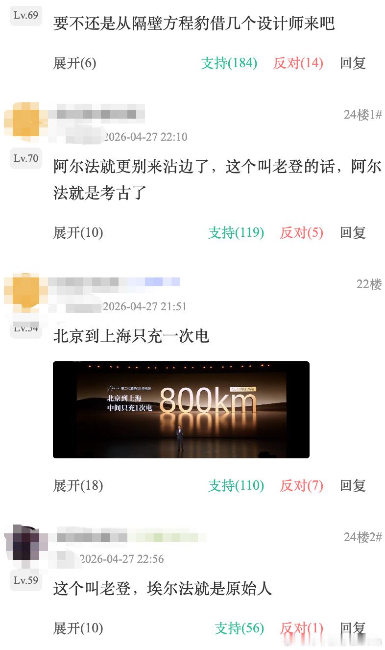 除了新车的亮点之外,网友的态度也比较妙,有人cue到了埃尔法,认为阿尔法、埃尔法是老古董了,当然,也有网友觉得新车并不够有诚意,是没有灵魂的躯壳。