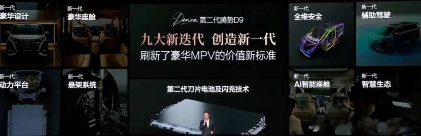 日前,第二代腾势D9正式上市,售价区间为35.98-46.98万元。作为比亚迪的高端品牌,新车自然也是搭载了比亚迪的王牌技术,比如第二代刀片电池、闪充技术、天神之眼5.0以及新一代AI智能座舱等。