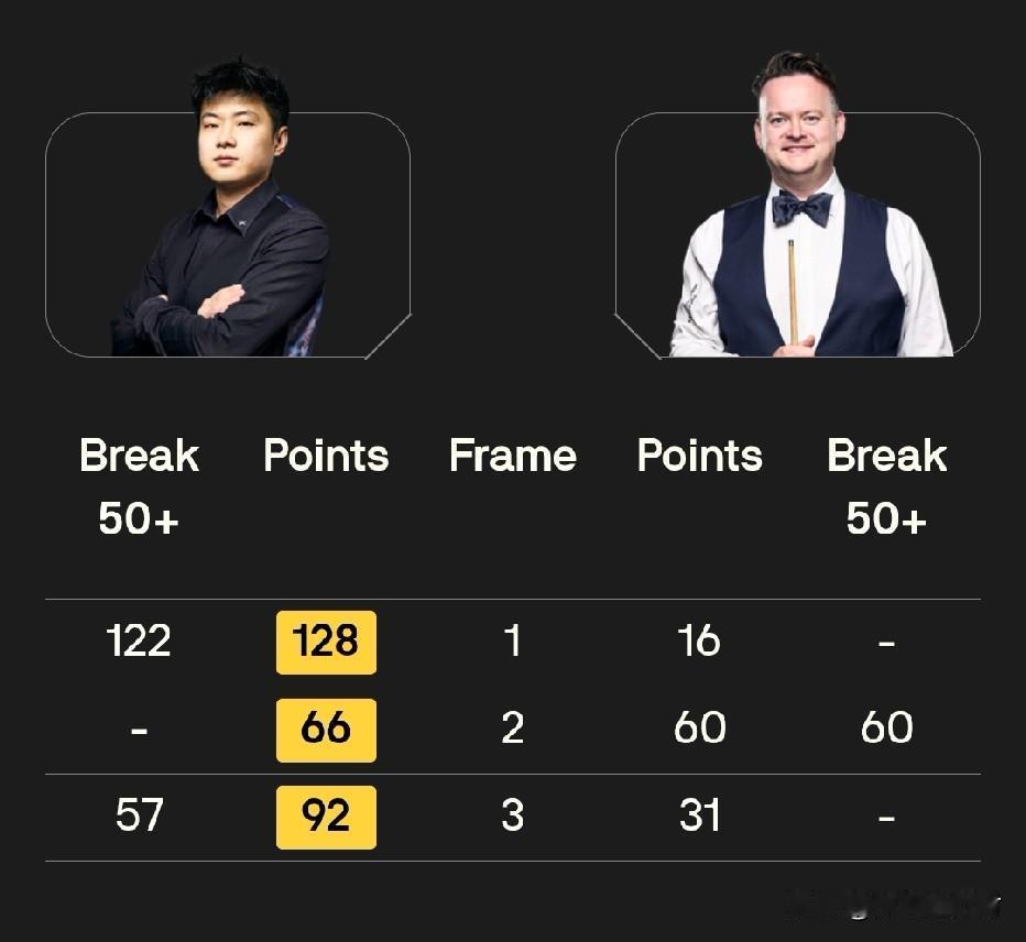 一杆完胜、一杆险胜、一杆大胜,在斯诺克世锦赛1/4决赛首场,赵心童对阵墨菲的前三局,便以3:0领先。 面对去年公开质疑自己世锦赛参赛资格的肖恩·墨菲,赵心童今日开场便火力全开,第一杆单杆轰出122分,轻松拿下此局。第二杆在相持阶段果断上手,尽管墨菲单杆得到60分,却仍未能阻止赵心童险胜,大比分2:0领先墨菲。第三局,赵心童状态依旧出色,单杆打出57分后,以92:31再下一城。 作为卫冕冠军,同时也是赛会头号种子,赵心童目前的夺冠赔率稳居首位,且领先优势明显。 这三局比赛下来,赵心童的表现让人倍感安心。期望在接下来的第一阶段,他能有个顺利的开局。毕竟25局的漫长较量,三局的领先优势微不足道。