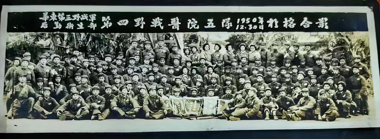 《華東第三野战軍后勤卫生部第四野戰醫院五隊1950年12月30日於榕合影》 看到这张照片,就像打开了历史的大门。 华东野战军在1947年1月由华中的新四军大部、华中野战军和山东的八路军一部、山东野战军组建而成。像“钢铁团”,1939年6月组建,历经无数战斗,歼敌20293人,俘敌10277人,缴获众多武器,1946年获“钢铁团”称号。还有“冲山阻击营”,1937年组建,1946年在冲山阻击敌人,完成掩护任务获称号。 而照片里的野战医院五队,他们在后方默默付出,保障着战士们的健康,这合影是他们奉献的见证,值得我们永远铭记。