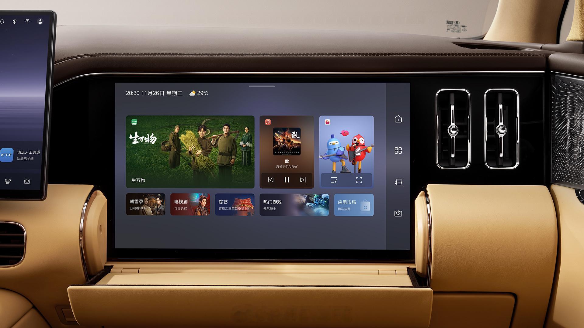 全系标配天神之眼5.0,AEB 130km/h能刹停、140km/h爆胎稳得住,安全拉满。座舱也上了新一代AI大模型,副驾还有个开合智能屏,可收可放,折叠起来还能当置物台,这个设计有点意思。
