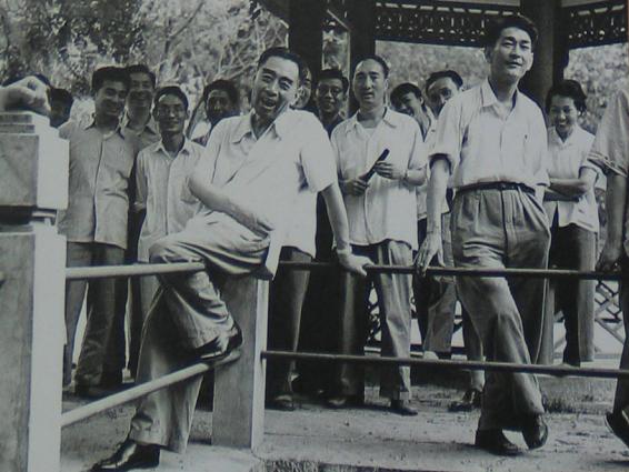 这张照片拍得实在太好了。周总理斜倚栏杆,显得非常放松,非常开心。那是1961年,周总理和出席全国故事片创作会议代表一起游览香山,和艺术家们在一起,当然轻松了。照片中那些新中国第一代的艺术家们,大部分都已经认不出来了。但是周总理身后那位,肯定能认出来,他是陈强,荧幕上的老坏蛋了,陈佩斯的父亲是也。