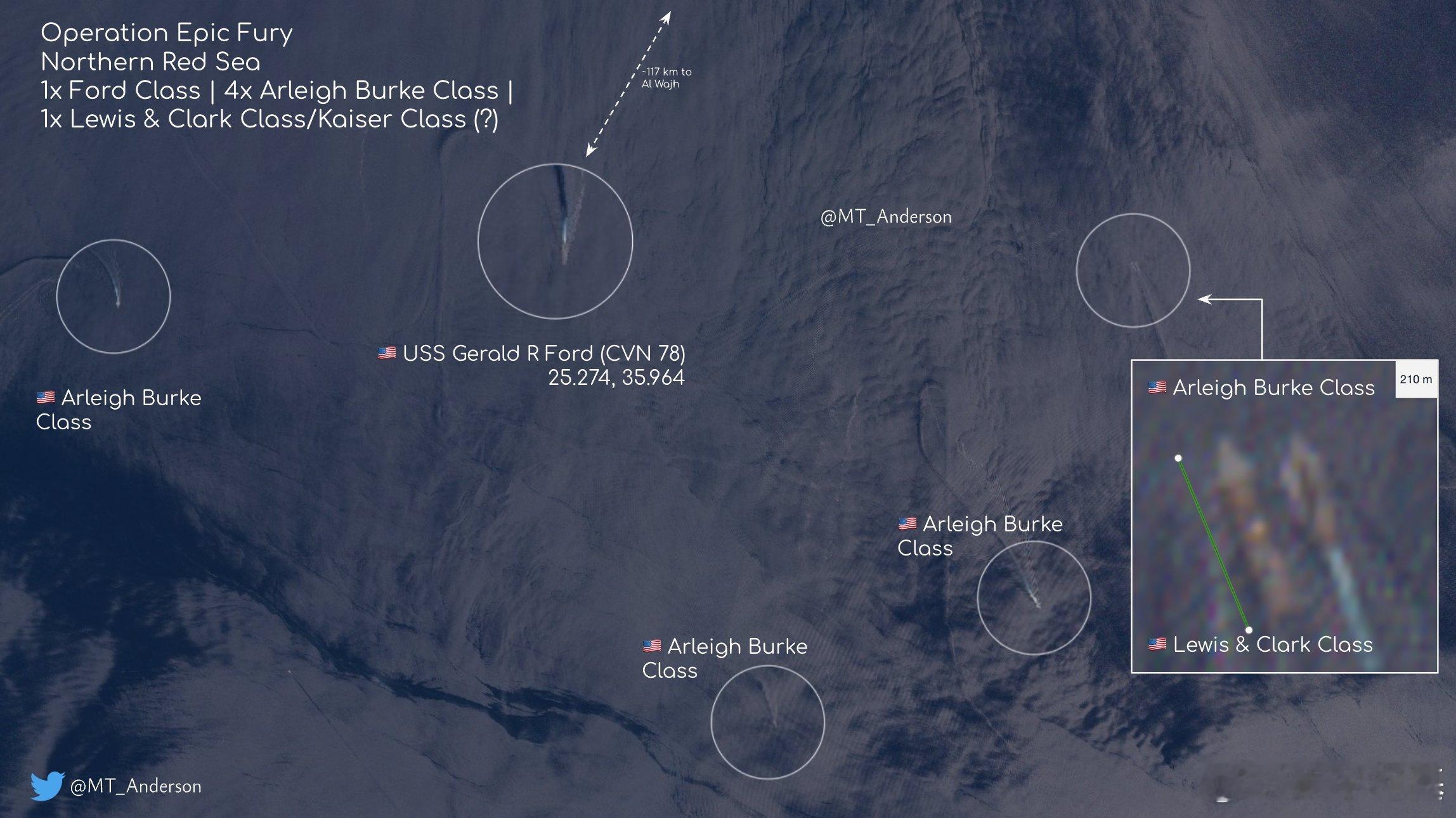 福特号目前依然在红海北部的沃季港西南约 117 公里处活动,护卫舰已经出现了四艘阿利·伯克级,这说明CSG-12恢复到了4DDG的编组来源:MT_Anderson哈梅内伊遇害以色列宣布袭击伊朗伊朗向美国提3个条件
