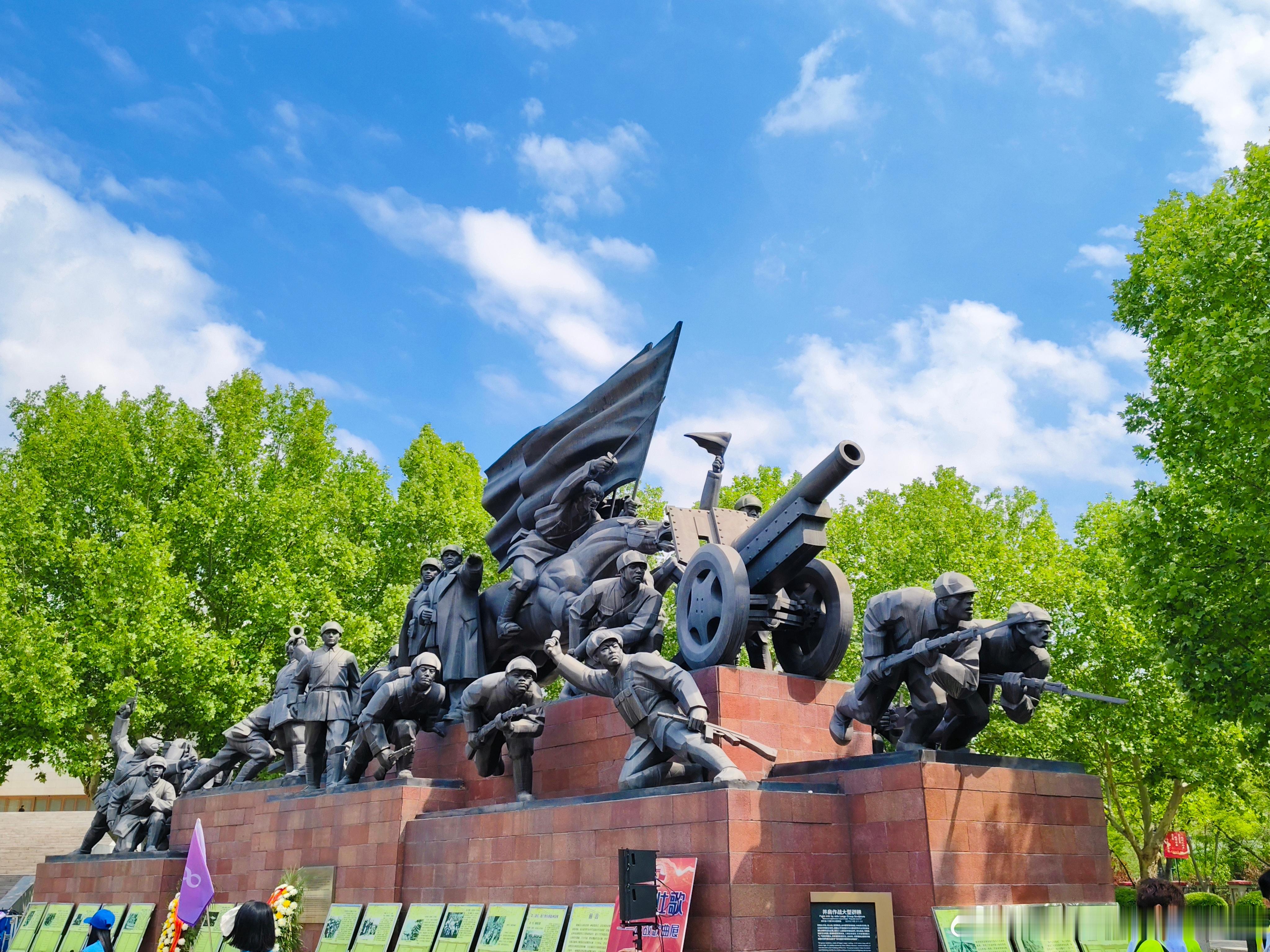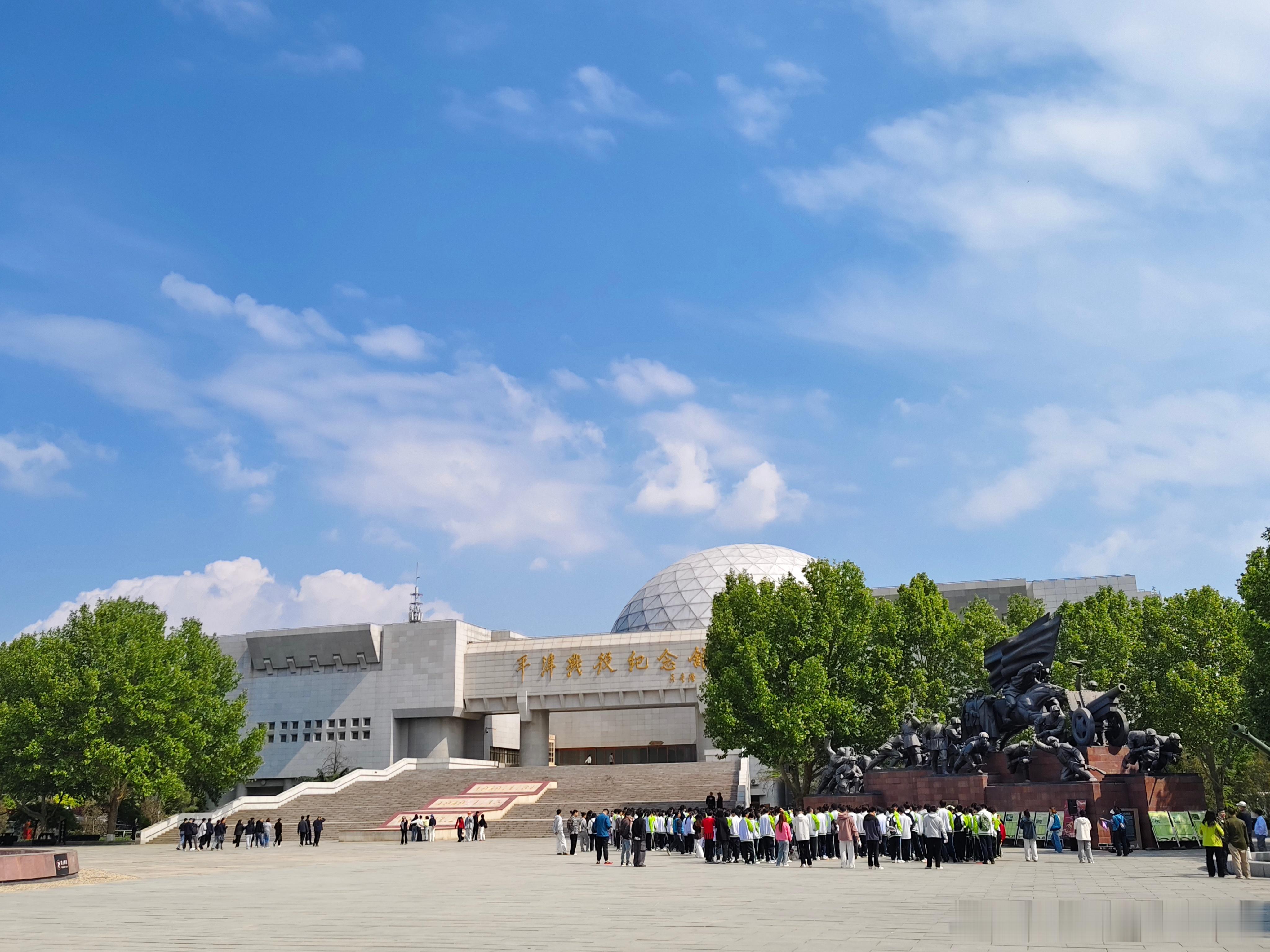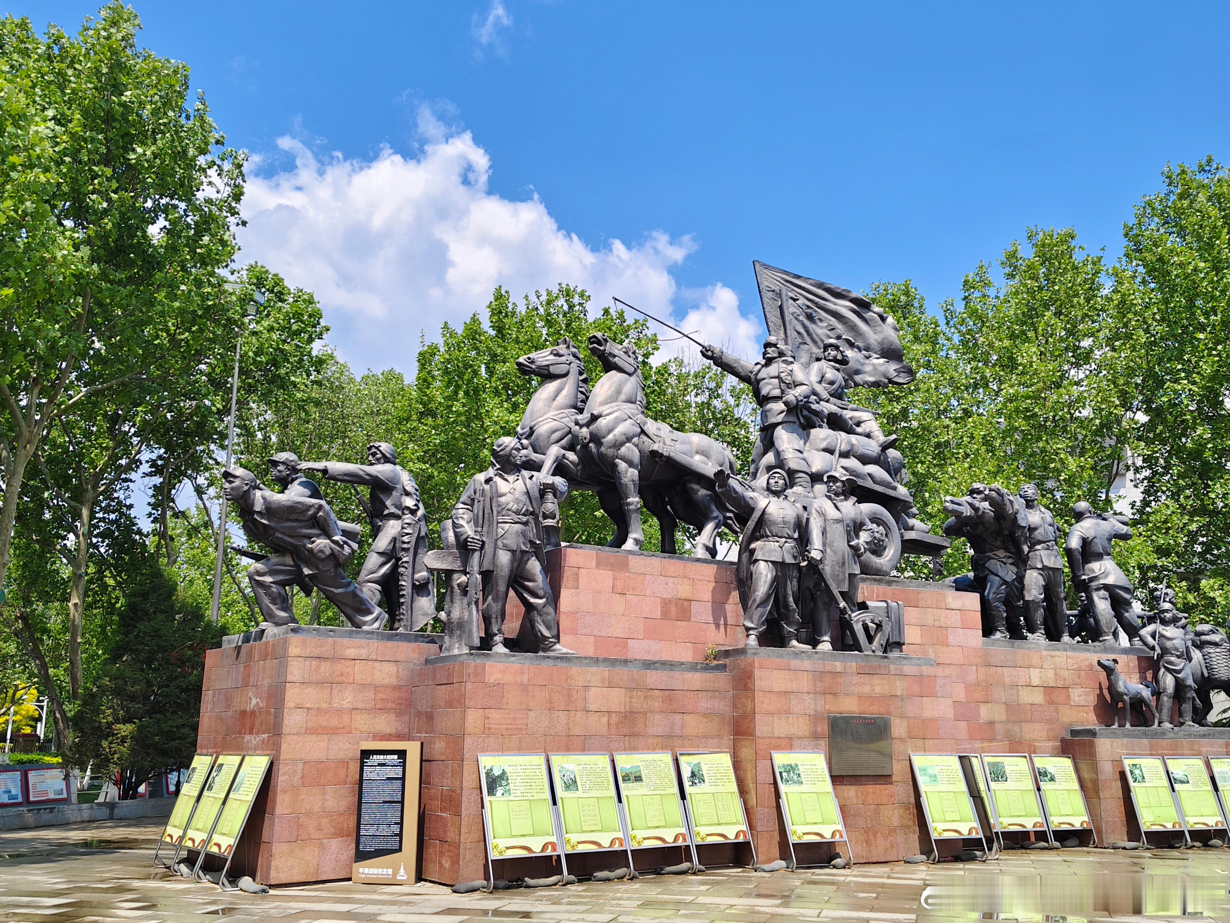【平津战役纪念馆院内的群雕和大型兵器】
