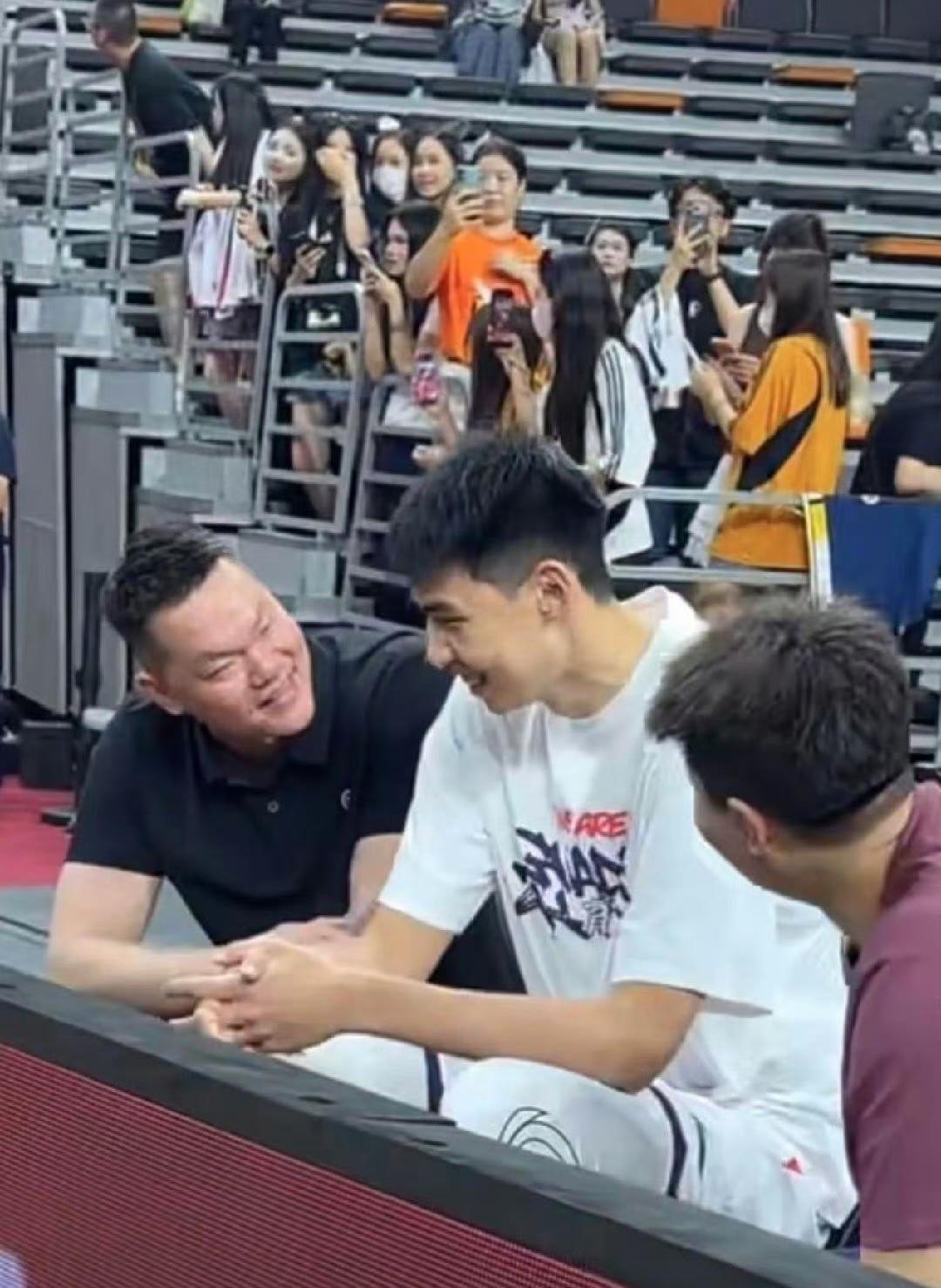 朱芳雨和徐昕季后赛前亲热交谈,谈什么呢两人都这么开心? 4月28日晚,CBA联赛季后赛12进8首场比赛开启,广东东阳光男篮在主场与广州龙狮男篮展开对决。赛前广东队总经理朱芳雨与广州队的球员徐昕在场边进行了亲热交谈,看上去两人都是非常开心,只是不知到底谈了些什么,惹得看台上的不少观众把这个画面也拍了下来。徐昕现被广东队租借给广州队,整个租期为四年,但在第2年和第3年设有两个回购窗口期,若广东队未行使的话,则从第4年起签约权就完全归属广州队了。虽然这才是租借的第一年,没想到徐昕的能力在广州队实现了惊人变化,并以场均得分11分、8.3篮板、1.8盖帽,获得本赛季常规赛最具进步球奖项和入选国内球员最佳阵容二阵。感觉广东队在下赛季回购徐昕的可能性会比较大,不知大家对此是怎么看的?