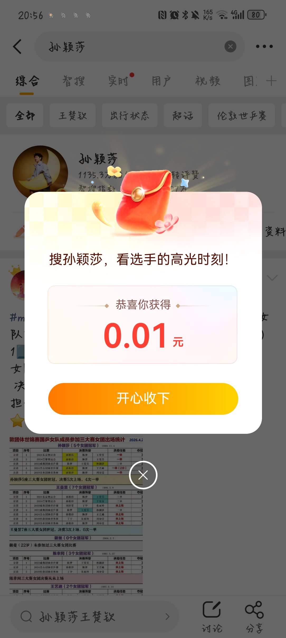 孙颖莎嘿嘿我也有