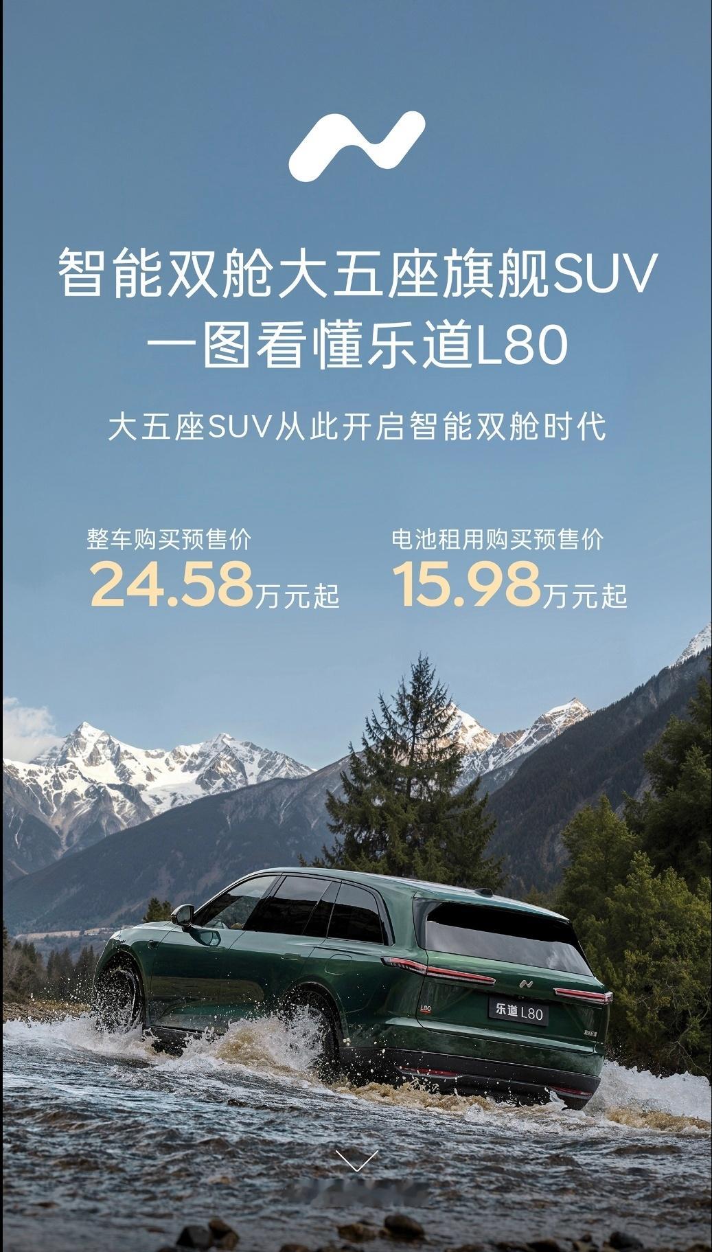 智能双舱大五座旗舰SUV乐道L80正式开启预售,整车购买24.58万元起,BaaS电池租用方案15.98万元起,新车将于5月15日正式上市。这波定价完全跳出了“L90五座降配版”的固有逻辑,是一套精准到极致的市场卡位策略。