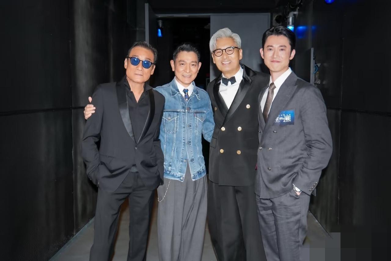 4月28日,刘德华空降《寒战1994》首映礼,他是绝对的C位,连郭富城、周润发都得靠边站,最后合影时他像是被P上去的。 刘德华65岁了,这次突然出现在《寒战1994》首映礼上带来很大惊喜,原因是他好显年轻,身材一直不错,穿着牛仔服头发乌黑,像三四十岁的小伙子。 而且,刘德华也是时隔多年跟郭富城、周润发同台,郭富城一直在台上笑眯眯地看着刘德华,他也是很欣赏刘德华的,只是平时没机会接触,这次终于看到了。 刘德华一现身就成了C位了,很多人竞相跟他合影,到后面大合影时,他是最中间的,他还挺调皮的,酒杯举那么高,像是被P上去的。 总之,刘德华这次空降《寒战1994》首映里带给粉丝很大惊喜,他的状态真好,怪不得他还要开演唱会,一看体能就可以。