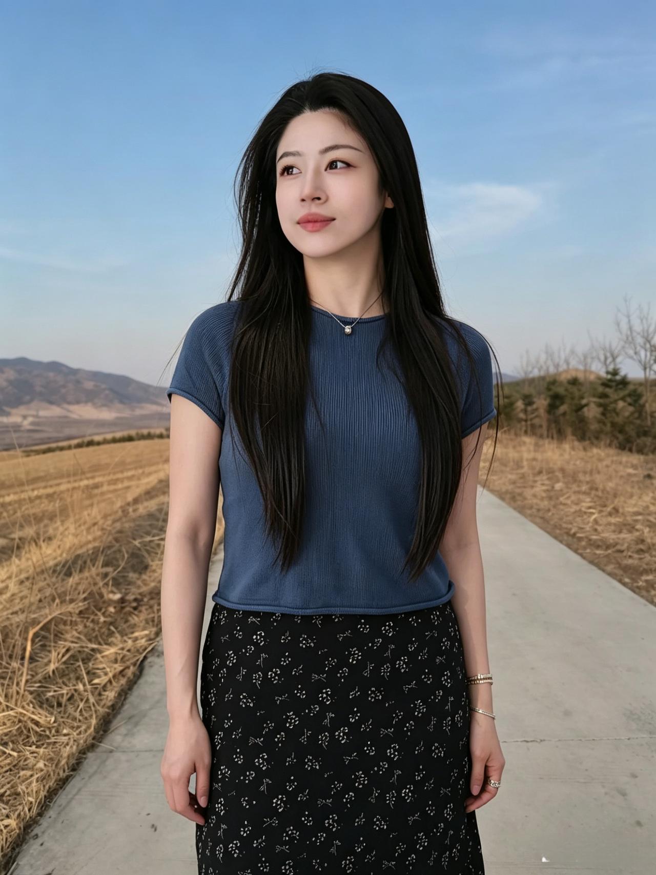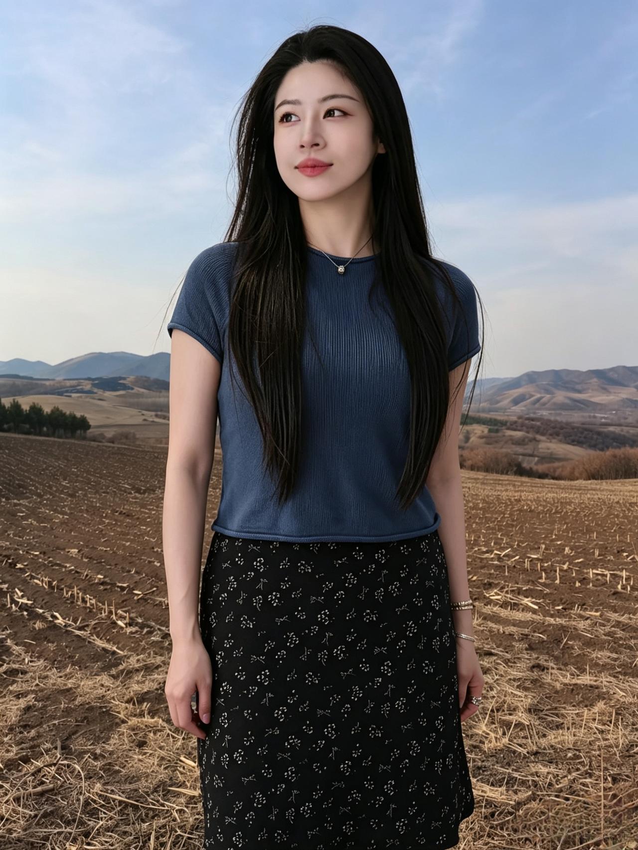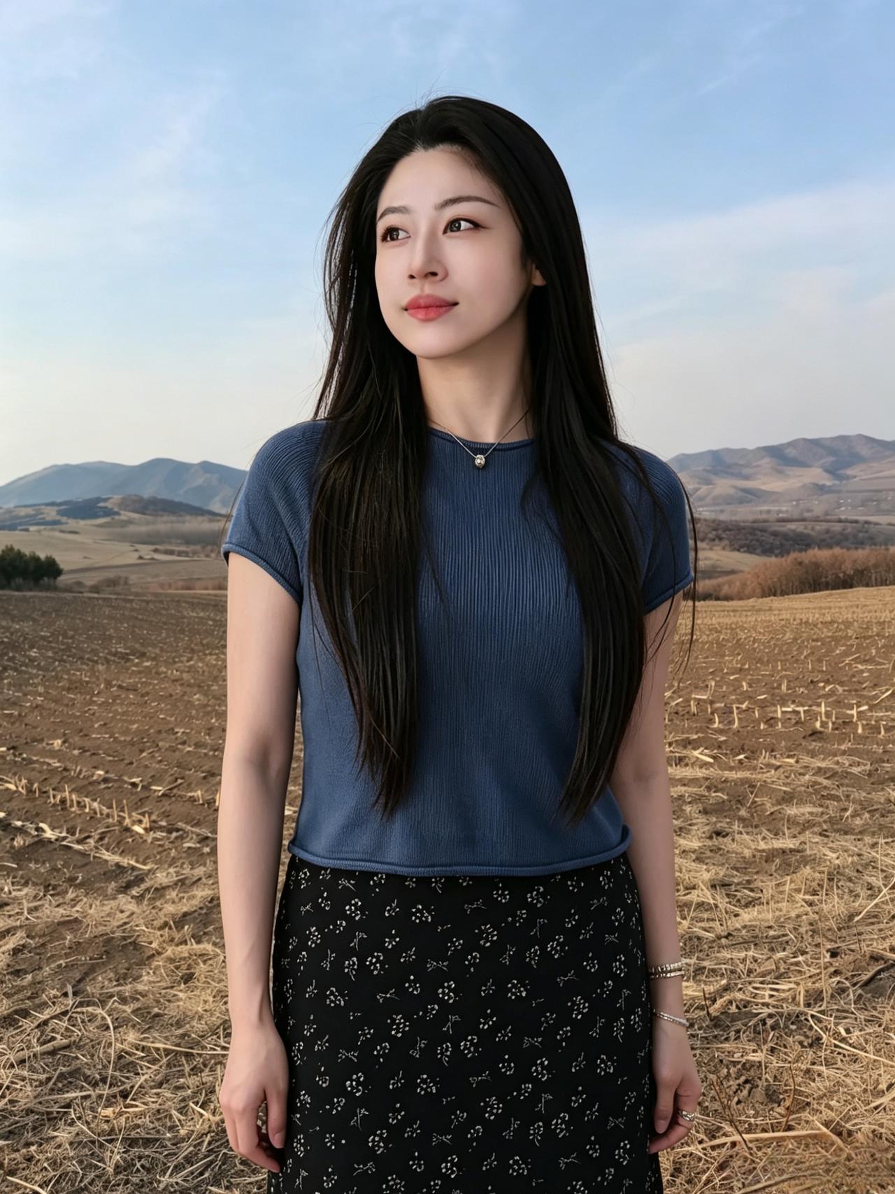 野旷天光净,风柔鬓发垂。 青山凝秀色,一笑动芳菲。