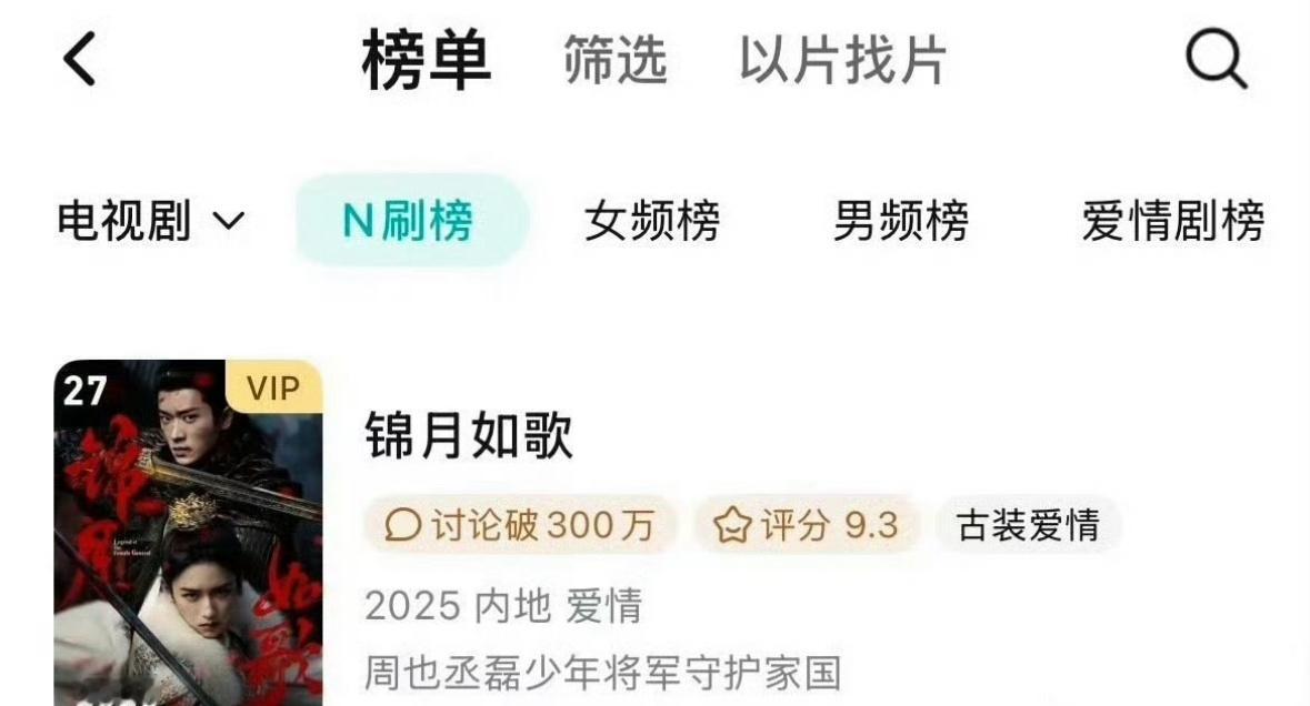 锦月如歌登上🐧年榜、N刷榜,周也丞磊通过这部剧吸了不少粉。