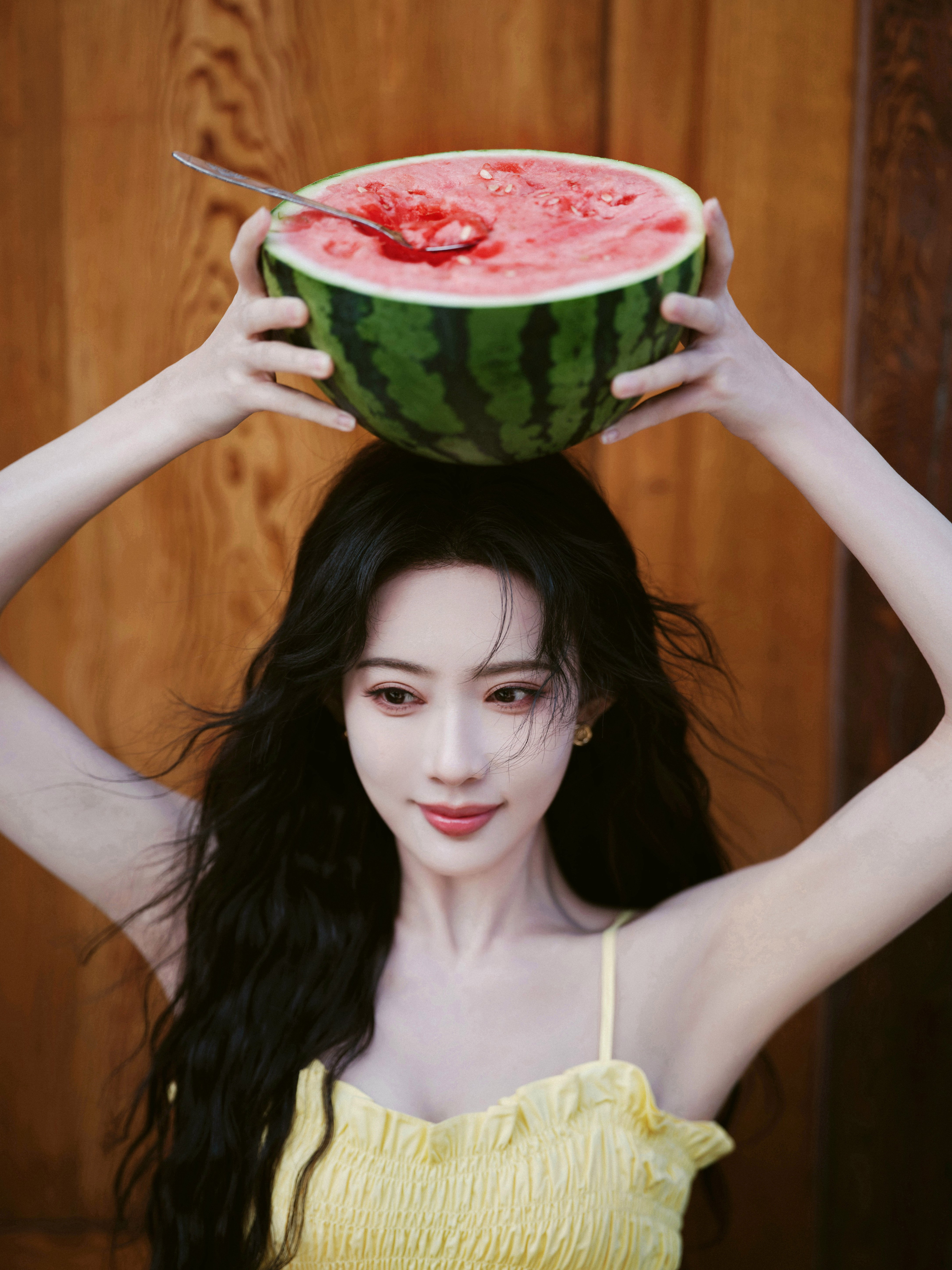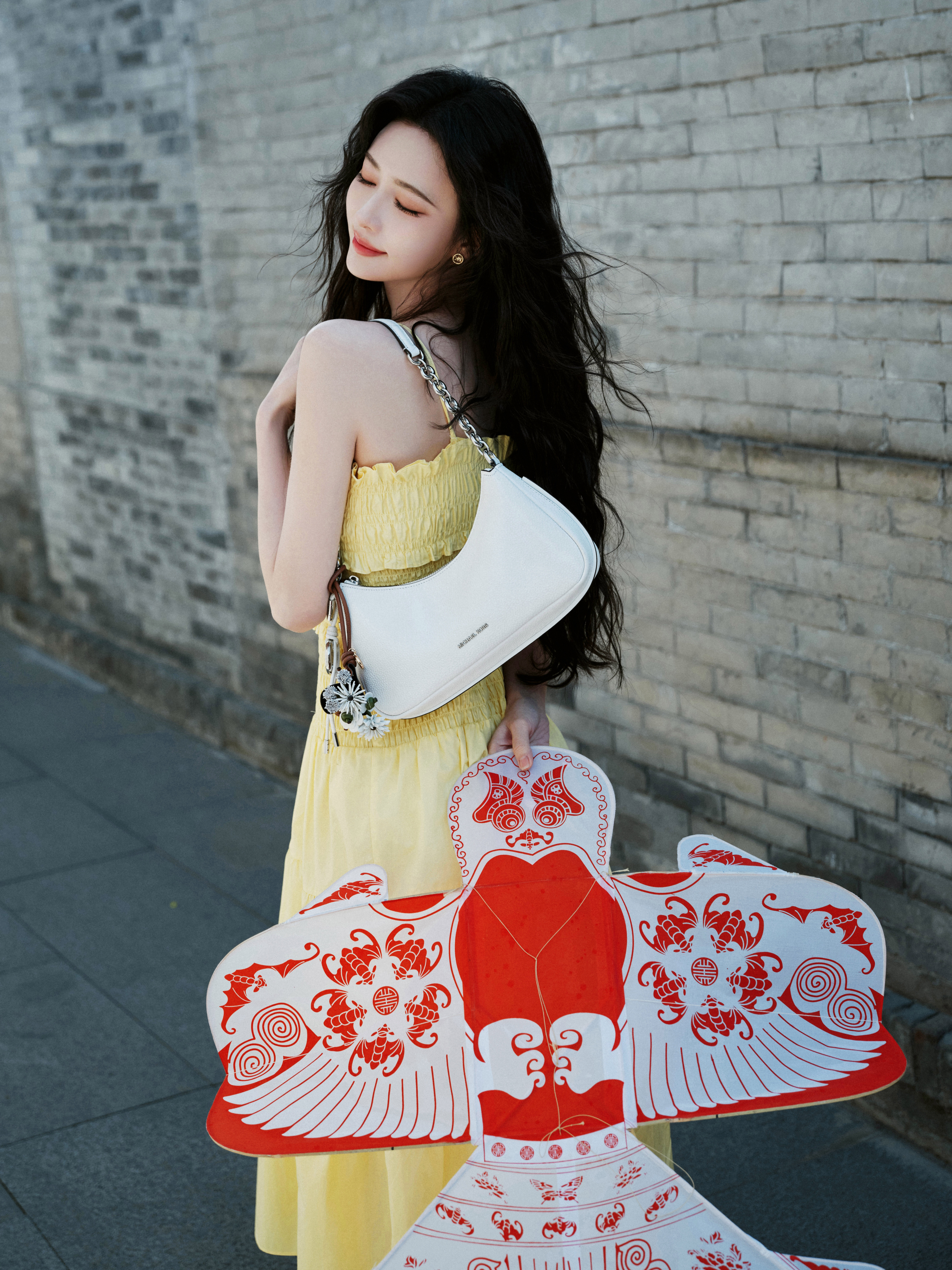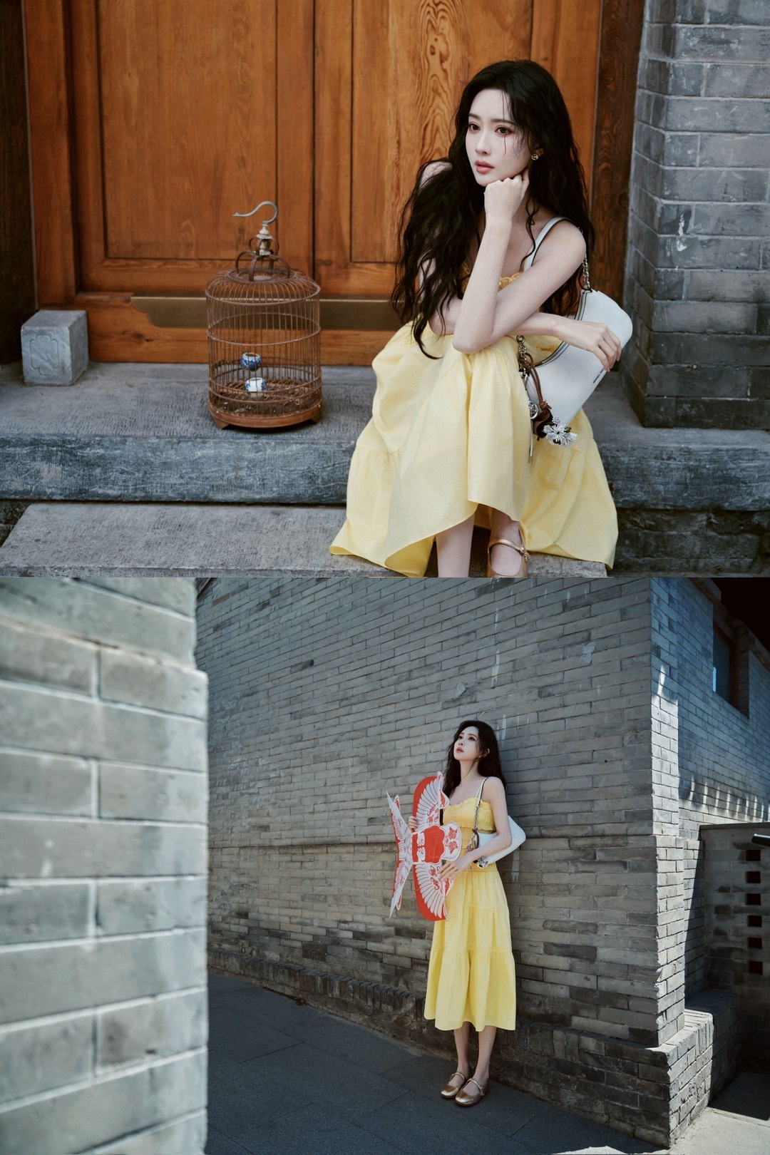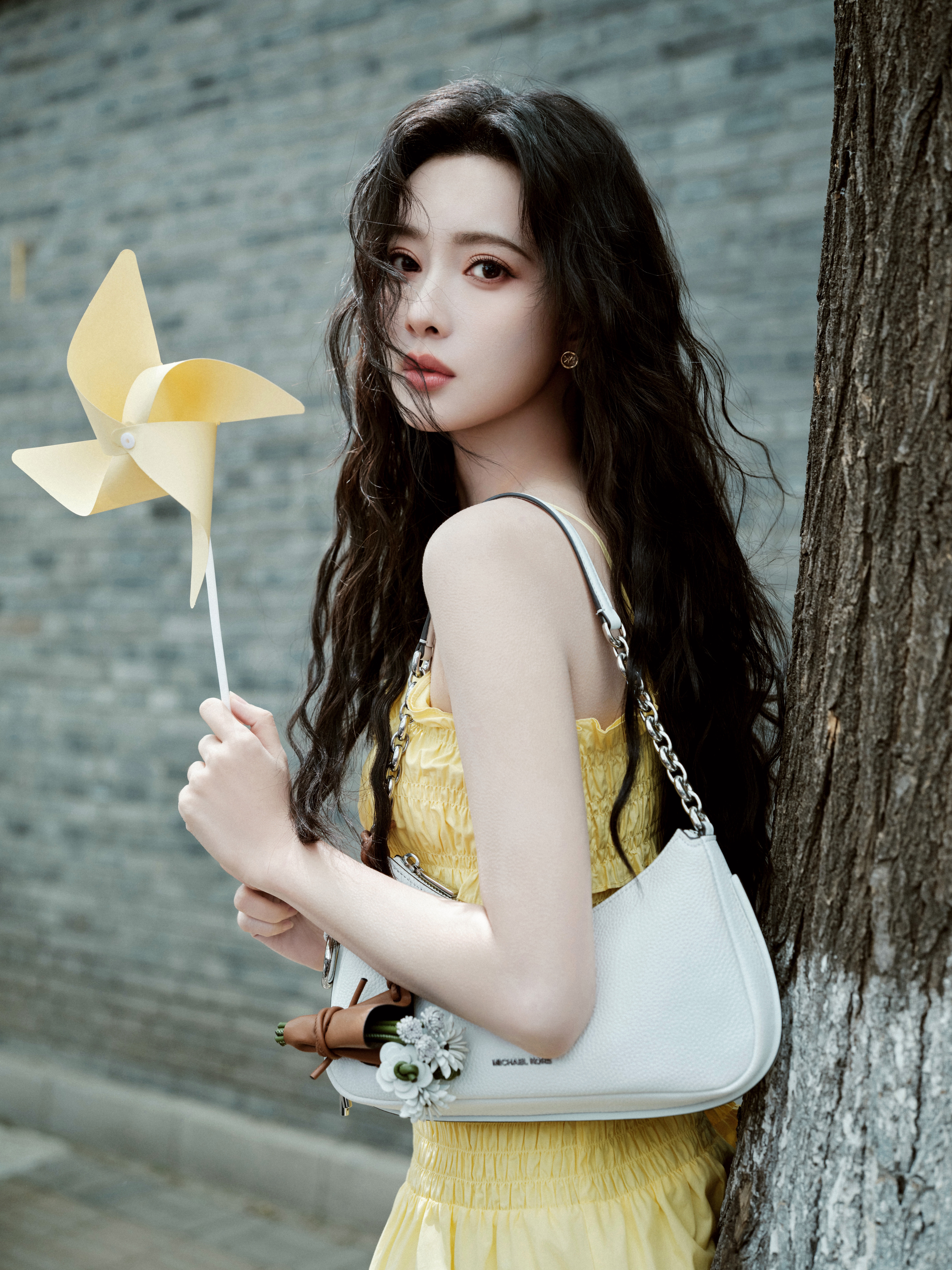 代言人孟子义今日Michael Kors品牌线下活动造型大片,浅黄色褶边吊带长裙搭配NOLITA手袋,配合氛围感十足的单车、鸟笼、风车、西瓜、象棋等道具,清透的夏日气息扑面而来,美丽孟姐轻松出片 ~