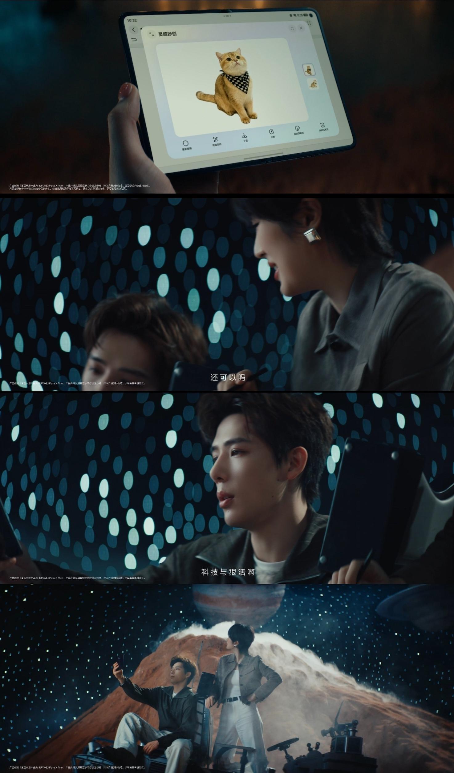 另外拍照这块也挺会玩的,双屏同显让人直接边拍边调整状态,难怪会有“移动pose机”这种说法。还有第三集那个AI画猫,有点像把理想照进现实,现在用华为Pura X Max展开大屏,AI灵感妙创随手一挥,随手就可画出大师级大作!