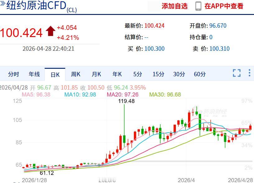 黄金就说黄金还会跌吧?看这个图,实在危险。纽约原油价格又回到100美元以上。战争随时可能重新爆发。还是等战争快结束再买的好。啥时候快结束呢?我们会有报告出来。