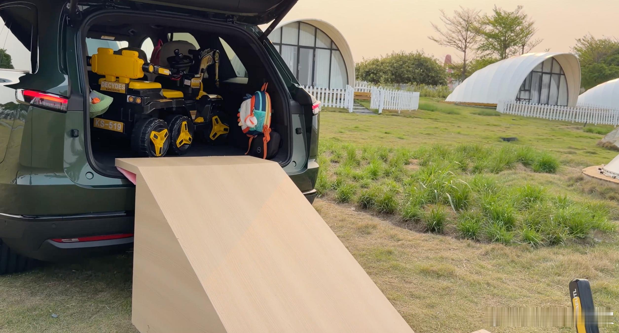 后备舱常规容积1200L,二排放倒后扩展至2600L(纵深2.2米),可容纳三折叠自充气床垫(7cm厚度),轻松满足双人平躺。搭配106L+63L双下沉储物格,外侧可隐藏30L冰柜(-18℃冷藏),内侧收纳露营桌椅套装,实现行李分区存放。