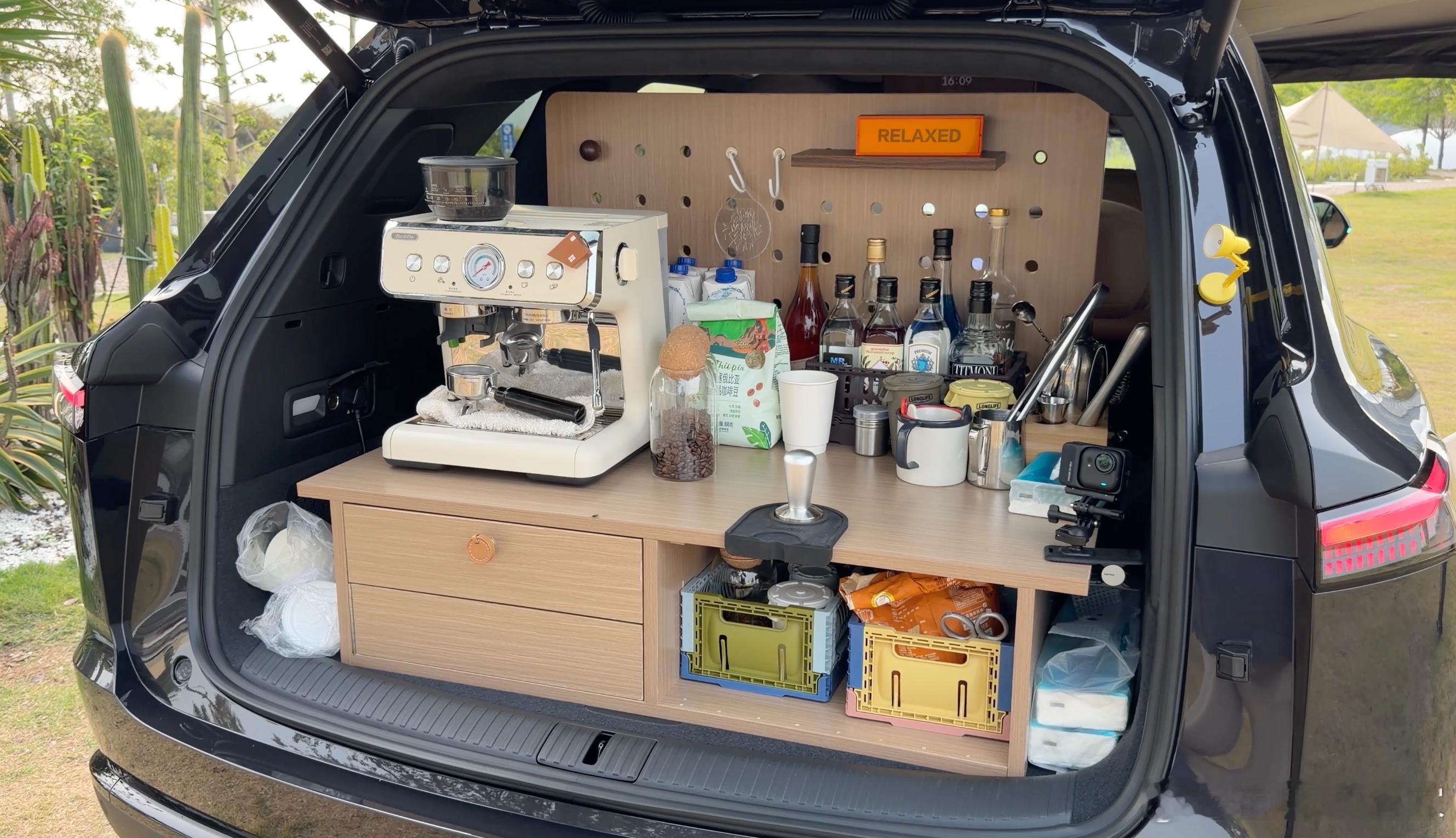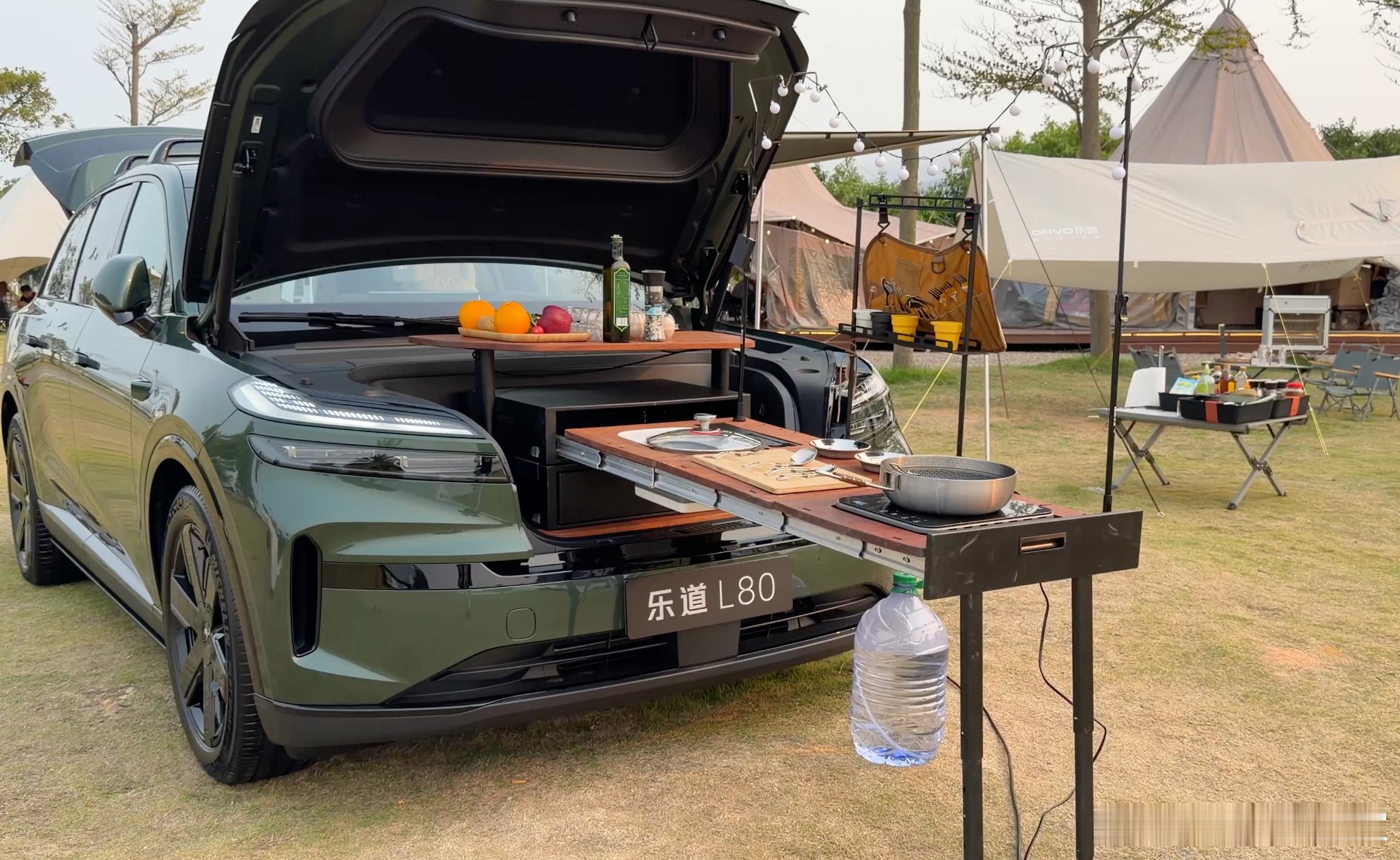 独有中国量产车最大的前备舱240L,可收纳集成餐厨岛台(含电磁炉、切菜板、水泵),支持露营烹饪,纯平地板还能临时充当钓位或沙发。