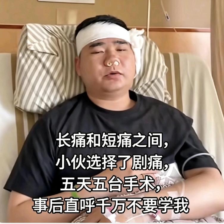 这届年轻人,到底有多难?5天之内接连完成五场手术,医生感慨,每一粒止痛药物都被硬生生用到极限。 厦门一小伙,5天时间连着做了5台手术,人工耳蜗、肠胃息肉、痔疮、拔智齿、鼻甲切除,一项接着一项,主打一个“一次性遭完所有罪”! 据4月28日羊城晚报报道,今年4月,厦门一个小伙子的求医经历在网上闹得沸沸扬扬,这名姓李的年轻人做了一件让人目瞪口呆的事:他在短短5天的时间里,竟然接连做了5台完全不同类型的手术。 这几台手术涵盖了全身好几个地方,包括往耳朵里植入人工耳蜗、切掉肠胃里的息肉、解决磨人的痔疮、拔掉总发炎的智齿,还有处理导致鼻塞的鼻甲肥大。 这种高强度的治疗节奏,连见多识广的医生都说几乎没见过,李先生之所以这么“狠”,其实全是生活逼出来的。 他本来是因为左耳听力有问题,早就约好了要做人工耳蜗手术,但他转念一想,自己平时工作实在太忙,像这样能集中休息的长假简直是奢望。 既然这次横竖都要住院,干脆“一不做二不休”,把身体里那些攒了好久的毛病一次性全给解决了。 在他看来,肠胃息肉和痔疮虽然是慢性病,但一直不舒服,智齿经常闹脾气,疼起来连饭都吃不下,鼻子也老是堵着,呼吸都不顺畅。 这些病单独看好像都不急,但凑在一起确实很影响生活质量,医生在仔细评估了他的身体状况后,觉得他年轻、底子好,没发现什么手术禁忌,这才同意了这个“连轴转”的方案。 但这5天对李先生来说,简直就像在鬼门关前反复横跳,每一台手术都要经历术前准备、手术操作和术后的折磨,对体力和意志力都是极大的摧残。 等全都折腾完了,李先生自嘲说自己已经彻底“老实”了,那种钻心的疼和浑身的不适,让他直言这罪真不是人受的,劝大家千万别模仿。 医生也感慨,虽然这些手术里不少是微创的,但叠加在一起的创伤和疼痛依然非常剧烈,他靠着那唯一的一片止疼药死扛,背后全是当代年轻人面对疾病时那种无可奈何的孤勇。 这个案例其实是一面镜子,映照出如今年轻人群体的真实健康现状,大家常调侃自己是“脆皮年轻人”,这还真不是开玩笑。 现在的年轻人背负着职场、生活和经济的山大压力,加班到深夜是家常便饭,一日三餐全靠高油高糖的外卖应付,还没时间运动。 这样下去,肠胃不出问题才怪,痔疮和息肉也早早找上了门,再加上休息不好、精神紧绷,免疫力自然往下掉,口腔溃疡、智齿发炎成了常态,连过敏性鼻炎等耳鼻喉问题也越来越多。 更让人心惊的是,以前大家觉得是“老年人专利”的那些病,现在正盯着年轻人不放,数据显示,35岁以下的人得心血管疾病的比例每年都在涨,高血压、高血脂在二三十岁的人身上也挺常见,甚至癌症发病都在往年轻人身上转,除了身体上的病,心理上的压力也让很多年轻人处于崩溃边缘。 难道年轻人不爱惜身体吗?其实不是,他们是“没空看病,也不敢生病”,房贷、车贷压在肩膀上,家里还有老小要养,职场竞争又那么激烈。 请一天假不仅要扣工资,还可能跟丢了项目,甚至被别人取代。所以,很多年轻人身体不舒服,第一反应都是“再扛两天”。 李先生这种“特种兵式”的看病法,说到底是对时间的一场疯狂压榨,他想趁着难得的假期把病看全了,是为了以后能不再请假,能继续在职场里拼杀。 这种“高效”的背后,藏着多少对生活的妥协和对未来的焦虑,那一片发挥到极致的止疼药,止住的是身体的疼,却止不住生存的难。 这些奔波在城市里的年轻人,一边在努力给生活拼出一个未来,一边却在悄悄透支着自己最宝贵的本钱。 对此你怎么看? 信源:羊城晚报
