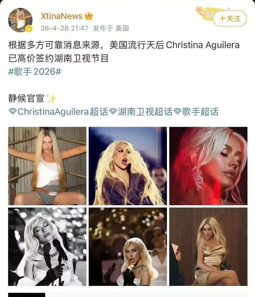 曝ChristinaAguilera已签约歌手 曝ChristinaAguilera已签约歌手2026 啊啊啊啊非官宣硬接