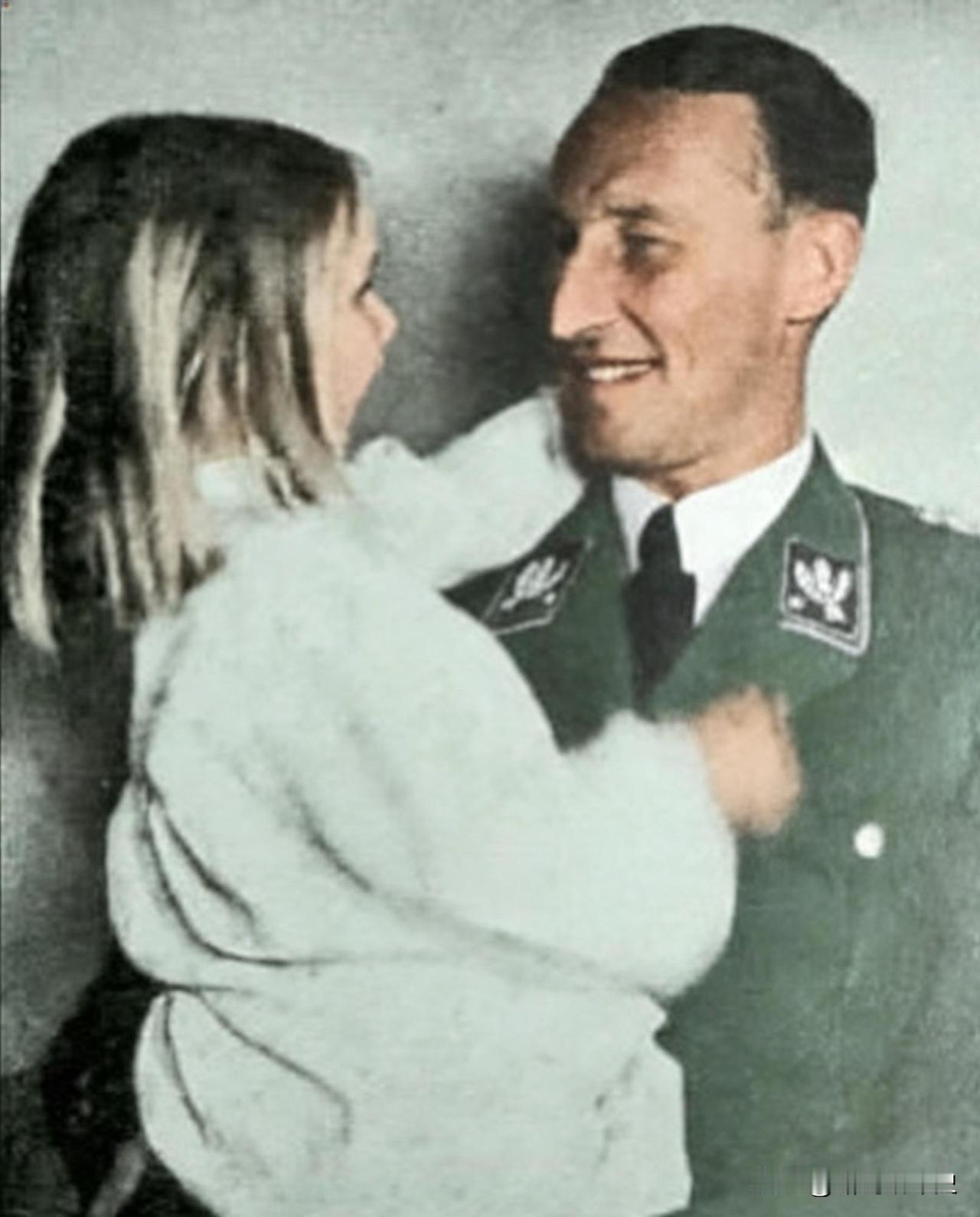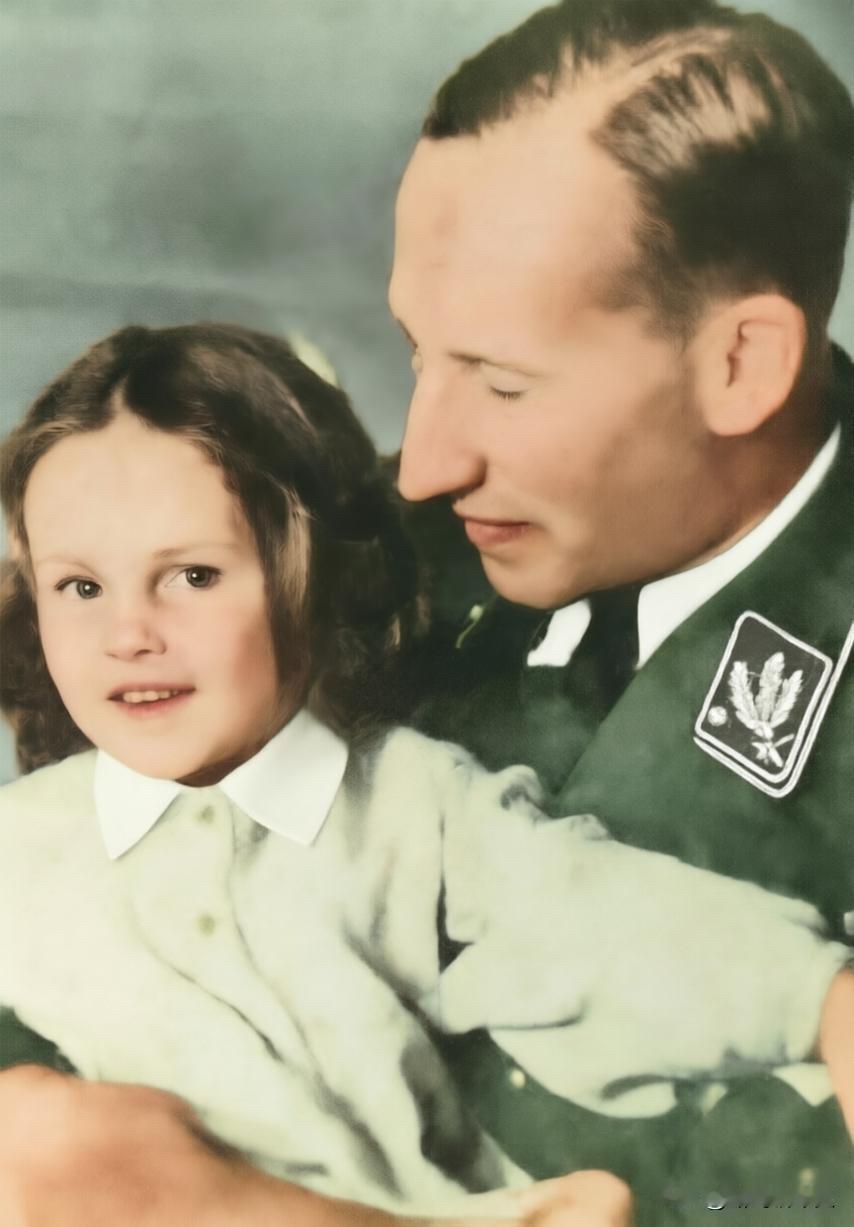 莱因哈德·海德里希与女儿希尔克的温情瞬间,铁血魔头满眼柔情,温柔环抱幼女,孩童天真地触碰父亲的军装,满是世间最纯粹的父女暖意。 可这身带有SD党卫军保安处袖章的制服,沾满了数百万无辜者的血泪。他是万湖会议主导者,犹太种族灭绝计划的总策划,盖世太保与党卫军情报系统的核心掌控者,被世人称作“第三帝国黑王子”,是二战纳粹最冷酷的刽子手。 在家里,他是极尽温柔的父亲;在外面,他是毫无人性的屠夫。极致温暖的父爱与泯灭人性的滔天罪恶,在同一帧画面里剧烈碰撞。天真的孩童此时并不知晓,父亲温柔怀抱的背后,是席卷整个欧洲、永难洗刷的反人类罪行。 历史 历史老照片 二战 二战老照片