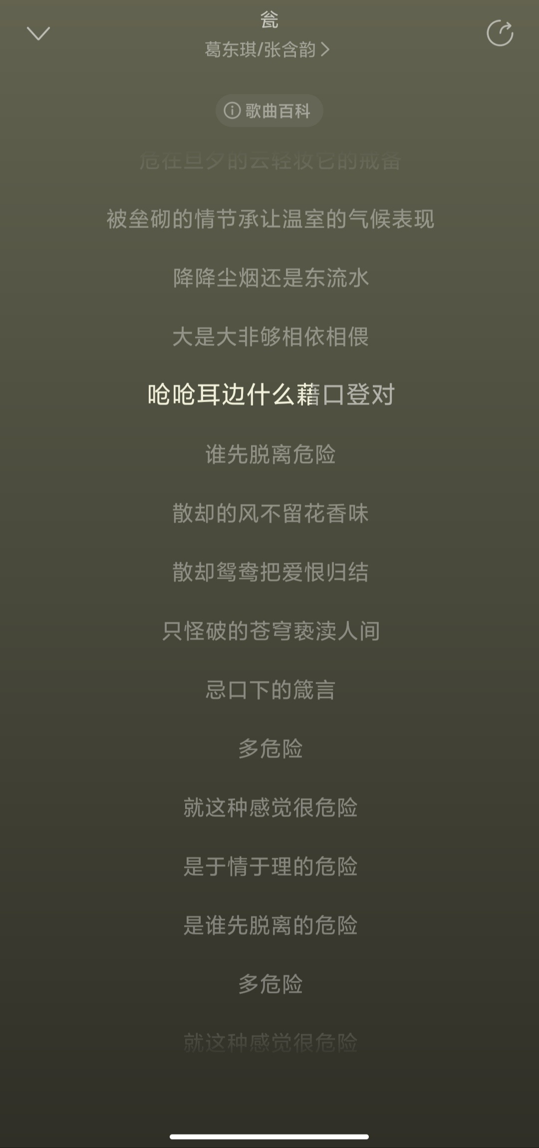 看个卫聂剪辑视频发现首很好听的歌,听歌识曲结果这首歌Q音没版权又重新把卸载好久的网易云下回来了,你赢了,为了这首歌下个网易云,这歌词也很妙啊,葛东琪真是个优秀的创作型歌手
