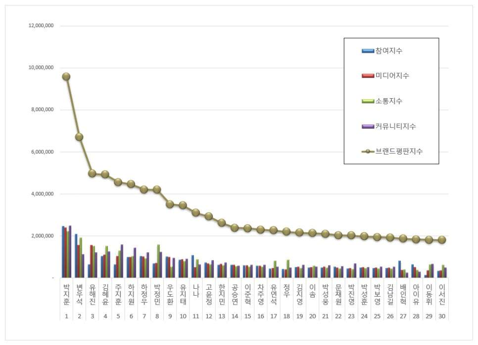 1-10名:朴志训、边佑锡、柳海真、金惠奫、朱智勋、河智苑、河正宇、朴正民、禹棹奂、刘智泰