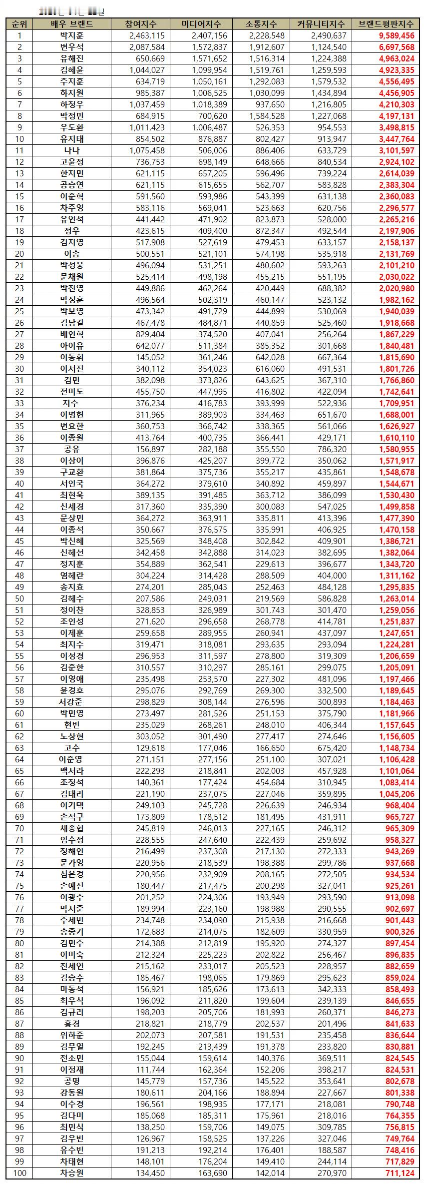 21-30名:朴成雄、文彩元、朴珍荣、朴成焄、朴宝英、金南佶、裴仁爀、IU、李东辉、李瑞镇