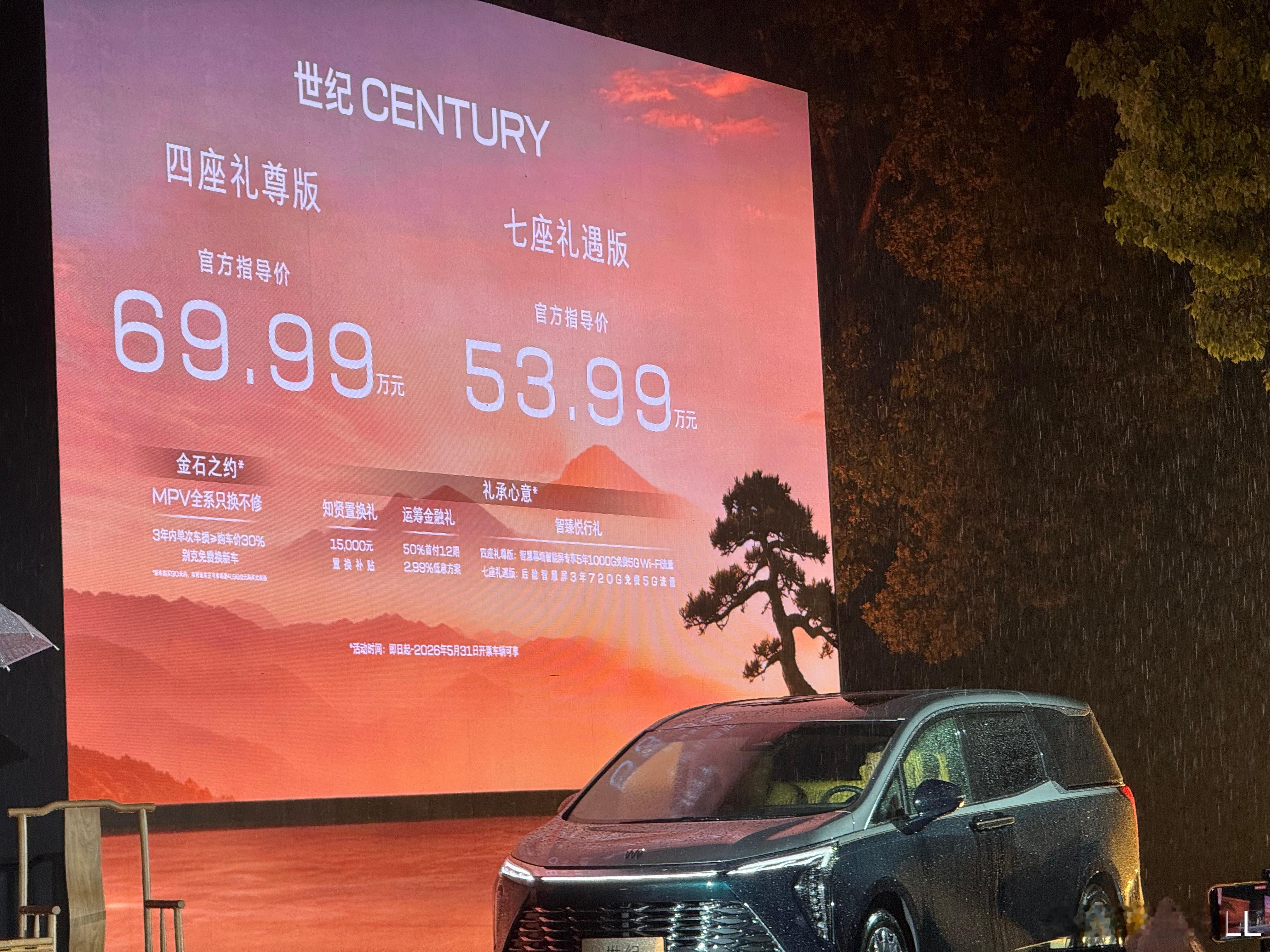 别克世纪CENTURY价格来了! 四座礼尊版:69.99万元七座礼遇版:53.99万元