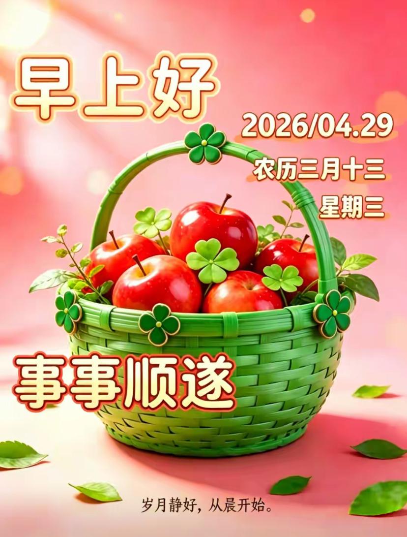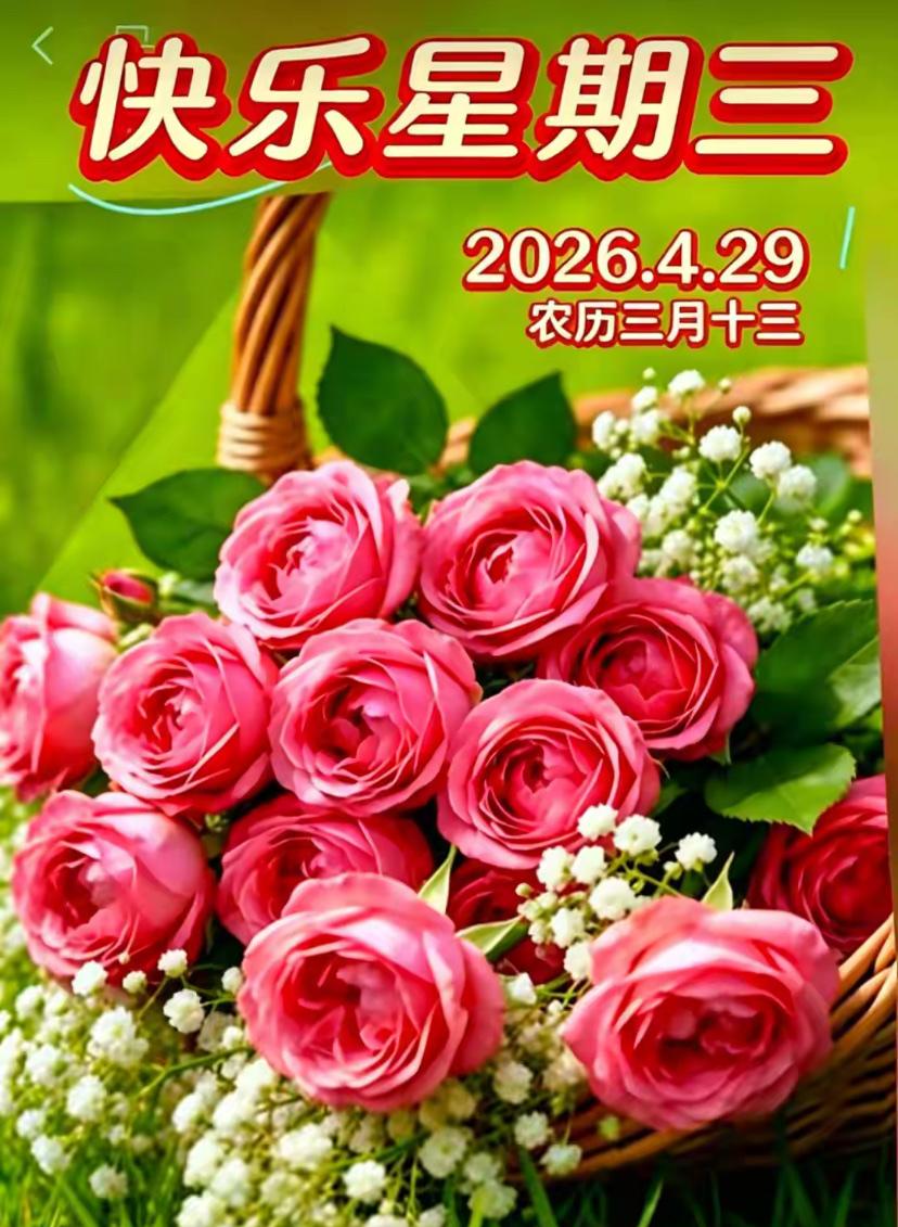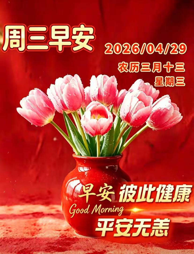 🌺☘️2026./4.29.周三春晨问安🌺 🌿💐周三春深,景色秀丽,暖风轻拂,花香四溢,山河增添了色彩,岁月弥漫着芬芳。茫茫人海中,缘分弥足珍贵,一声真诚的早安,情谊缠绵,直抵心房。不贪恋尘世的浮华,不感叹时光的匆匆,愿你心境平和,自在安然,前路光明一片,万事顺遂如意,三餐温情相伴,四季平安无忧,淡看人间烟火,尽享岁月安康。