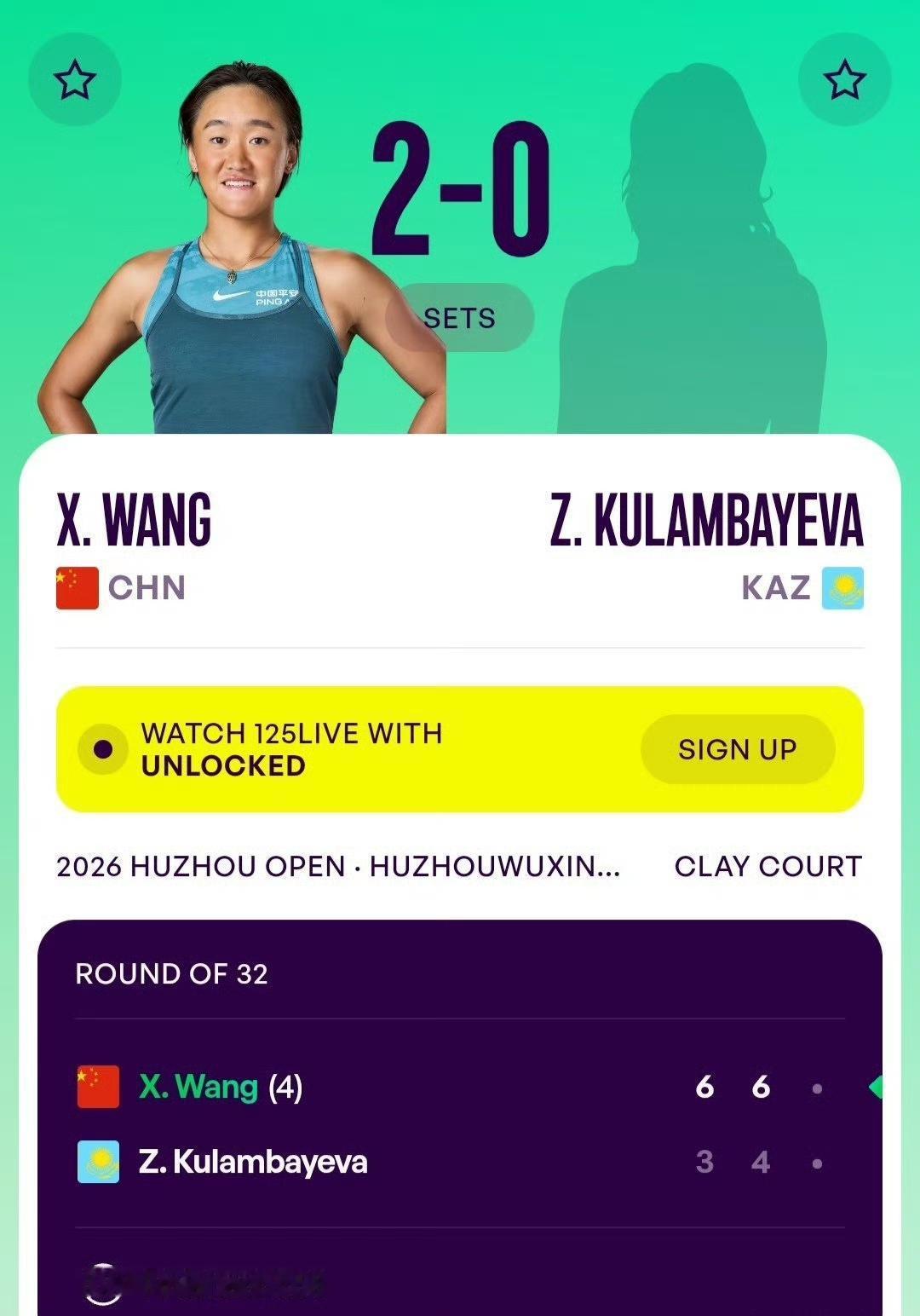 劳模王曦雨又来赚大分!WTA125湖州赛迎来开门红: 作为赛会4号种子,她以6-3/6-4轻取资格赛选手库拉姆巴耶娃晋级次轮。王曦雨复出之后斩获19胜1负,本站已收获15分,目前即时排名回升至第150位。 赛后坦言接受职业生涯的起伏,比喻"人生就像心电图,一帆风顺你就挂了"。