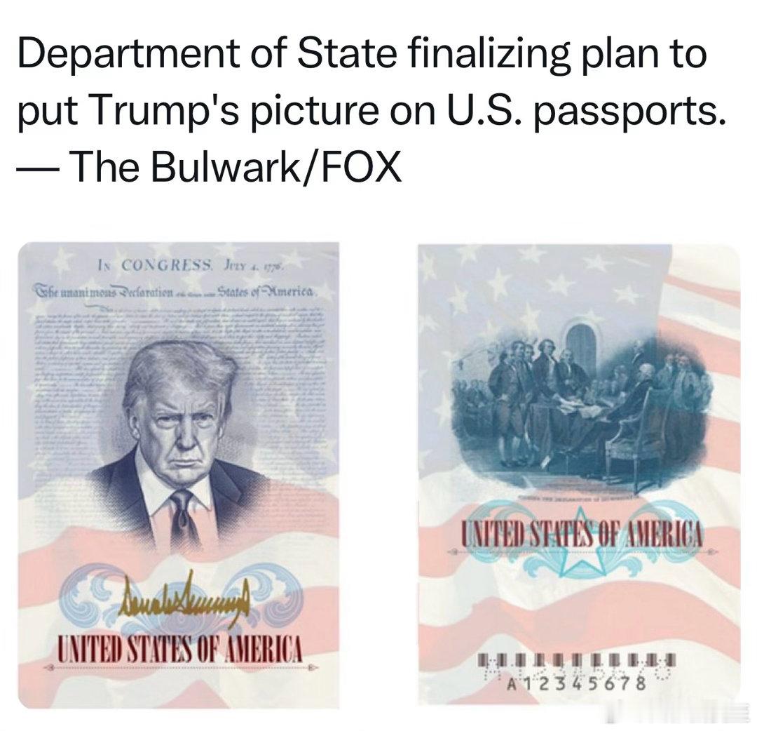 国务院将推出限量版、印有Trump头像及金色签名的“爱国护照”