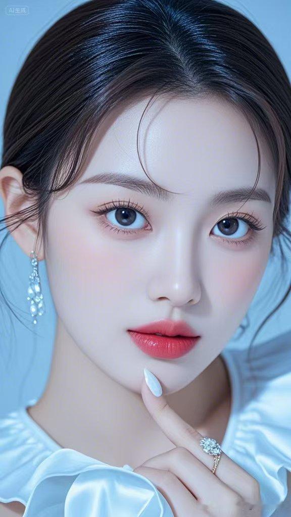 梦幻蓝调的背景下,一位优雅美人宛如从画中走来。那清冷感妆容简直绝了,被怼脸拍时,美得让人移不开眼。 莹润透亮的肌肤在蓝调衬托下更显白皙,湿漉漉的黑发随意散落,搭配碎钻般的眼妆,仿佛藏着星辰大海。红唇莹润撩人,每一寸五官都精致到无可挑剔,像是被上帝精心雕琢过。再加上闪耀夺目的珠宝点缀,清冷又妩媚的气质瞬间封神。在这梦幻氛围里,她就像一首动人的诗,让人沉醉,也让人不禁感叹这神仙颜值。
