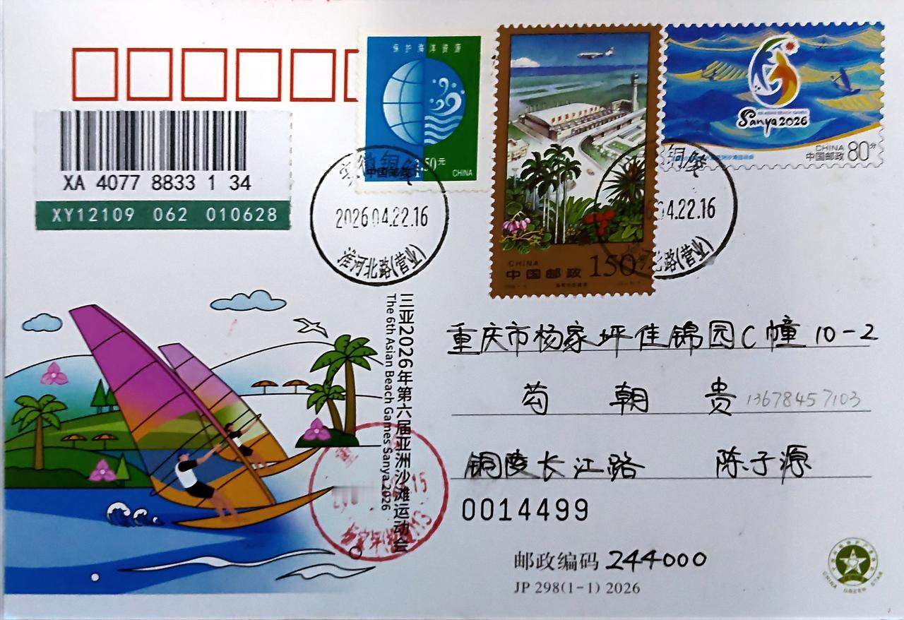 纪念邮资片首日实寄