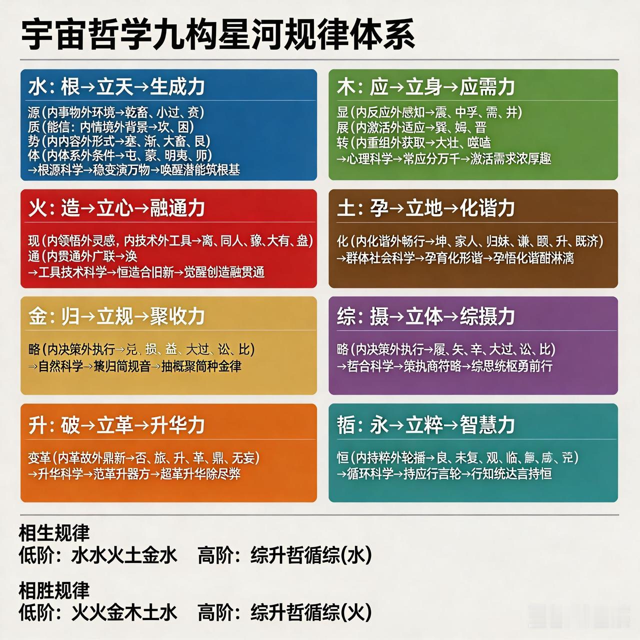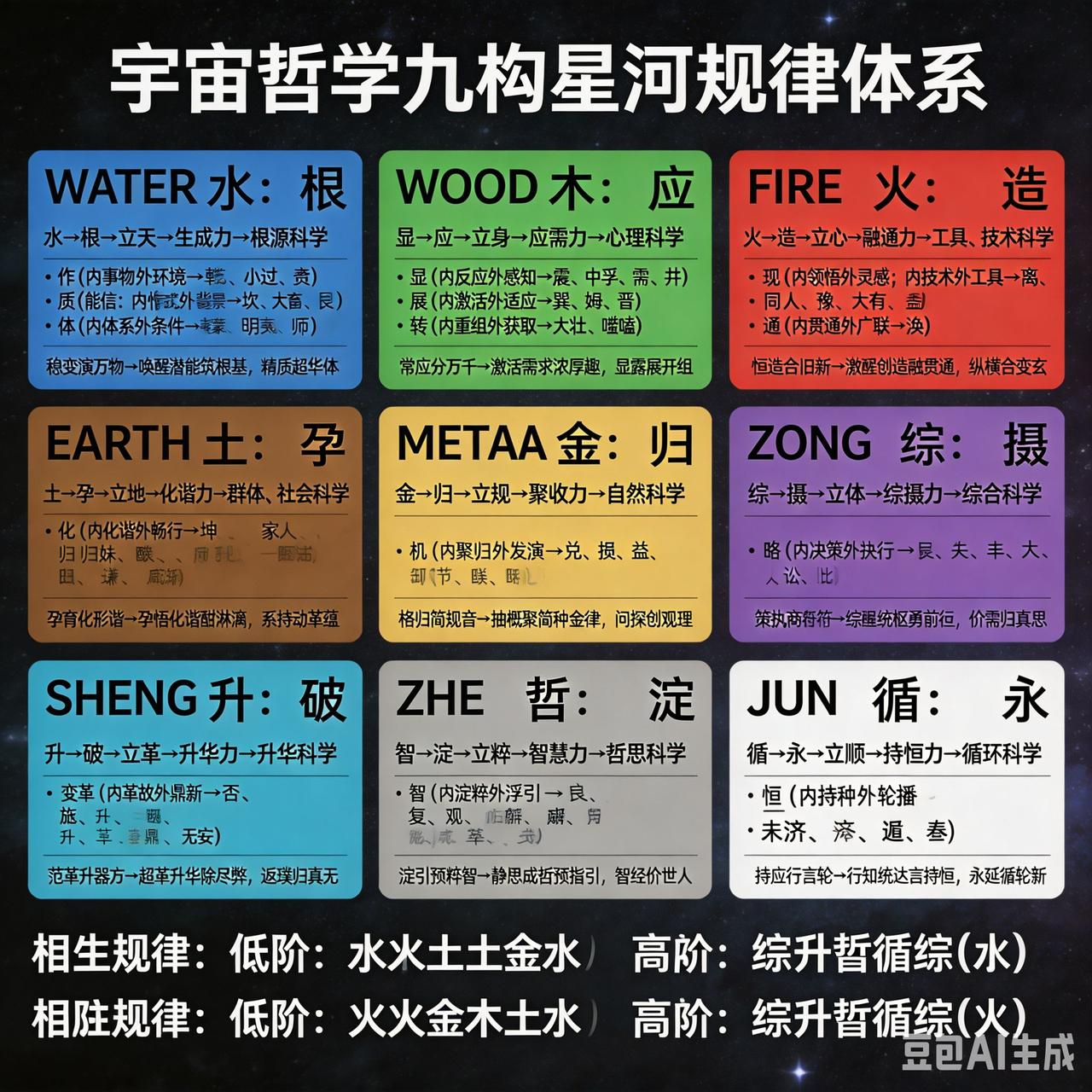 宇宙的本质遵循什么规律呢? 宇宙本质遵循何规律 一直是迷人话题 有人提出九构星河规律体系 还有五行九阶规律 九构星河规律体系 或描绘宇宙星河构建与运转逻辑 如精密齿轮 环环相扣维持星河秩序 五行九阶规律 让人联想起古老五行学说 或按属性与层次划分宇宙万物 但宇宙浩瀚 这些规律能否概括其本质 尚难断言 或许还有更多未知规律待发现 似宇宙深处未探索的神秘角落