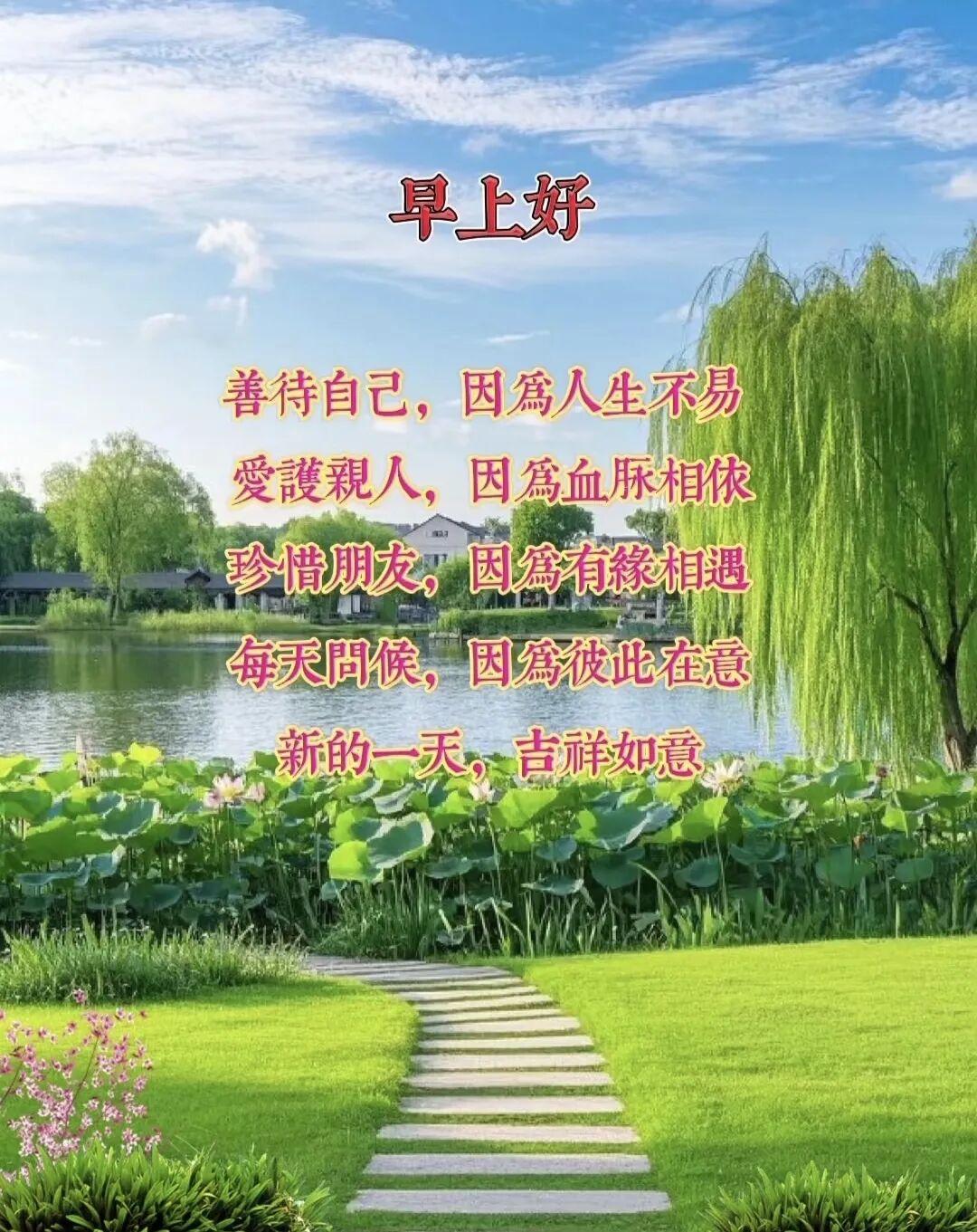 一朝相识一生缘,永生牵挂在心间,岁月匆匆又一天,清晨祝福到身边,千言万语汇一句,