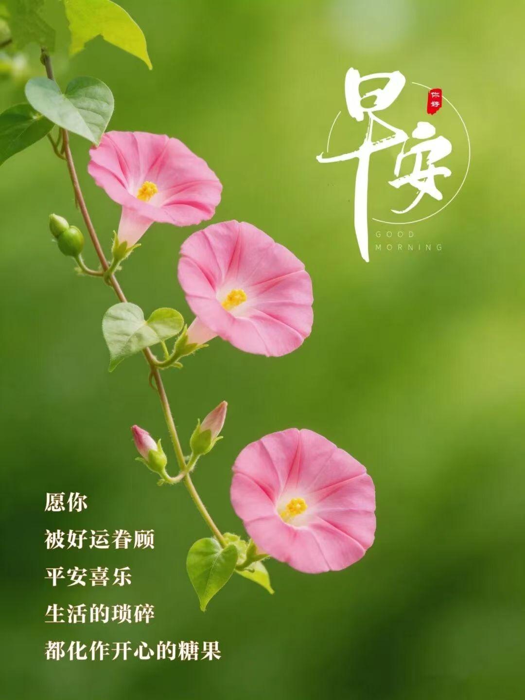 清晨送上一声问候,愿你抛开烦恼,满心喜乐。把吉祥揣在身边,把健康放在心上,岁岁平