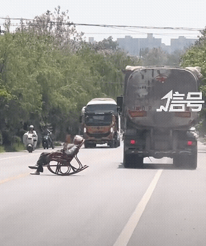 想知道他是怎么在路中间的,难道是从家里扛把椅子自己走到路中间的?[捂脸]