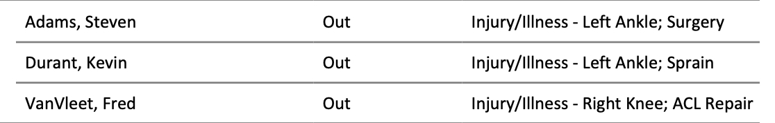 明天火箭vs湖人 G5,杜兰特左脚踝扭伤确定缺席。
