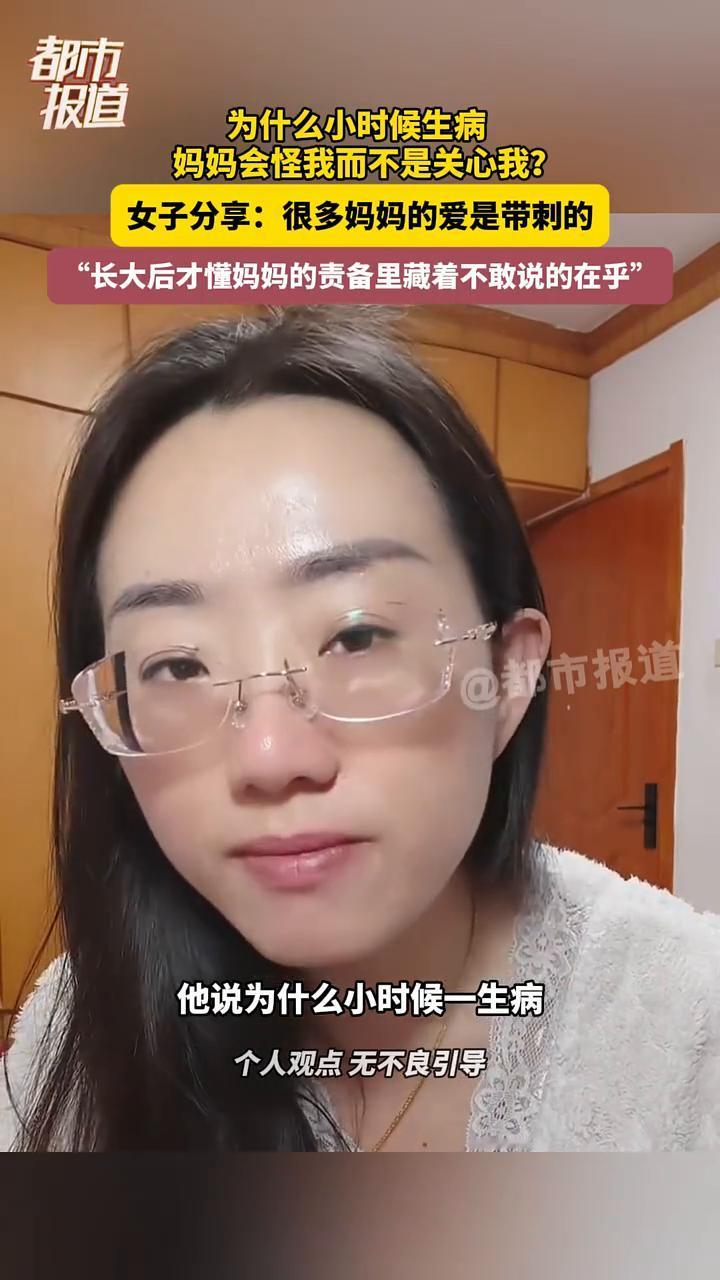 为什么小时候生病妈妈会怪我而不是关心我?女子分享:很多妈妈的爱是带刺的,"长大后才懂妈妈的责备里藏着不敢说的在乎"。 我刚刚刷到一个视频,他说为什么小时候一生病妈妈就会很生气,会不停怪我而不是关心我?下面有一条高赞的评论说:因为我一而再再而三叮嘱你,你就是不听。你以为我是怕花钱吗?我是怕小病就能要了你的小命。我关心你的话你听不进去,但是我责备你的话你却能记得一辈子。 其实你有没有发现很多妈妈的爱都是带着刺的,长大后才懂,越在乎越失控,越深爱越尖锐。原来妈妈的责备里藏的全是不敢说的在乎。