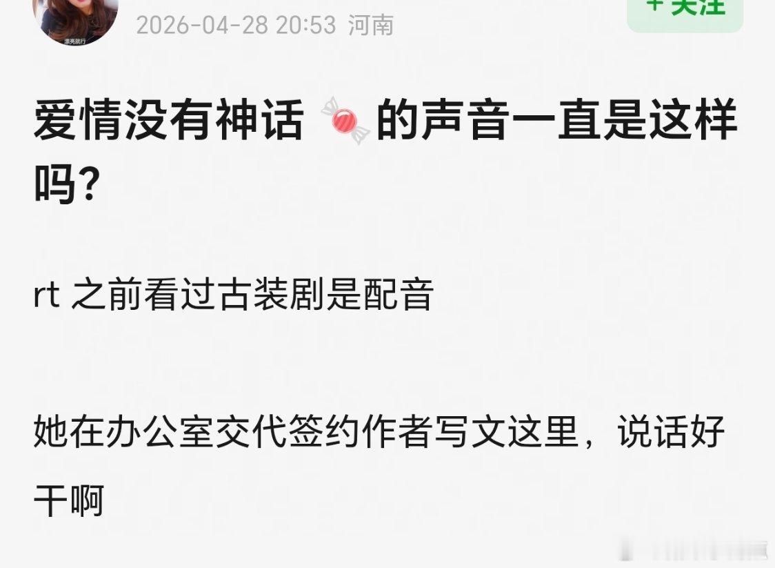 唐嫣《爱情没有神话》台词被网友吐槽之前看她拍的古装剧都是配音,没想到出道这么多年台词功底差成这样…黏黏糊糊又尖锐刺耳,实力🌸粉地狱名不虚传…