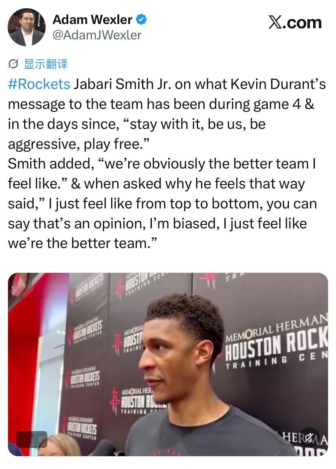 小贾巴里-史密斯认为火箭是更出色的球队:
