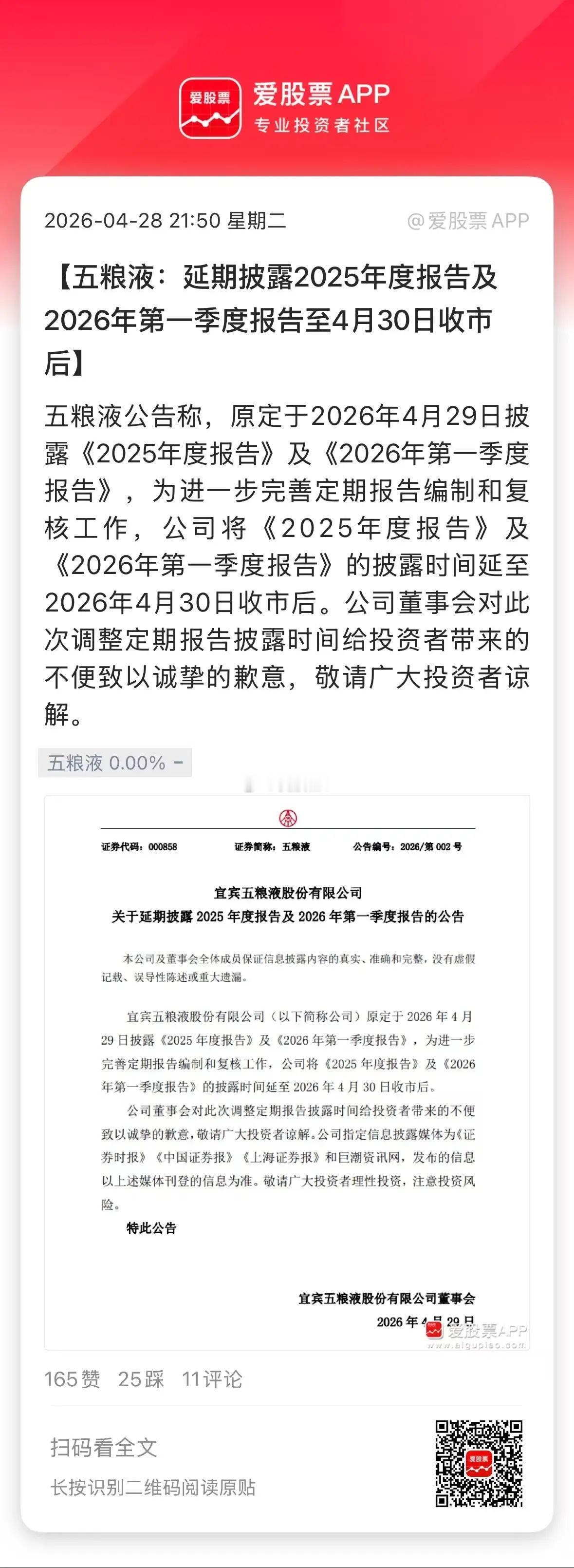 浓眉大眼的白酒二哥,竟然延后发年报和季报,A股主流白酒没有这样的先例!所以这是要干嘛,是惊喜还是惊吓呢?机构预测一季度是-27%,不会比这更差吧。五粮液账上1400亿现金,哪怕业绩差。如果加大分红+回购,大家也是可以原谅的!毕竟股价已经趴在地板上了。